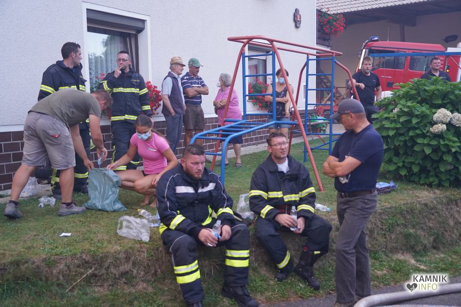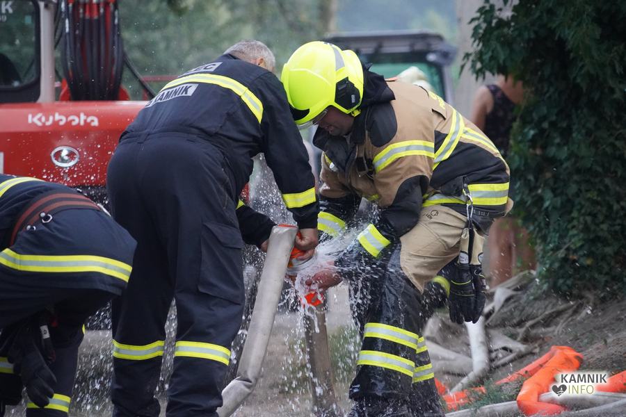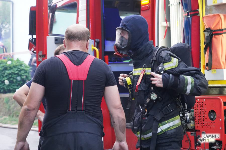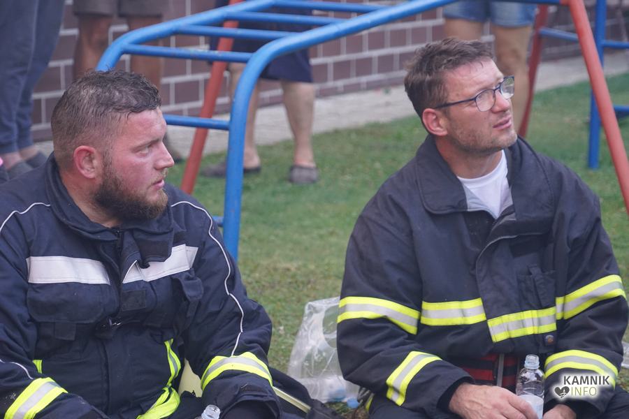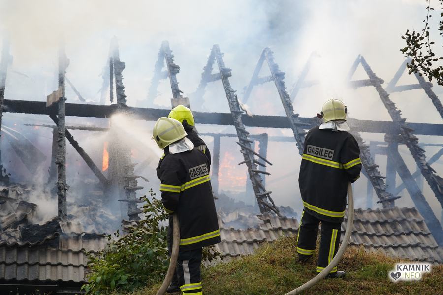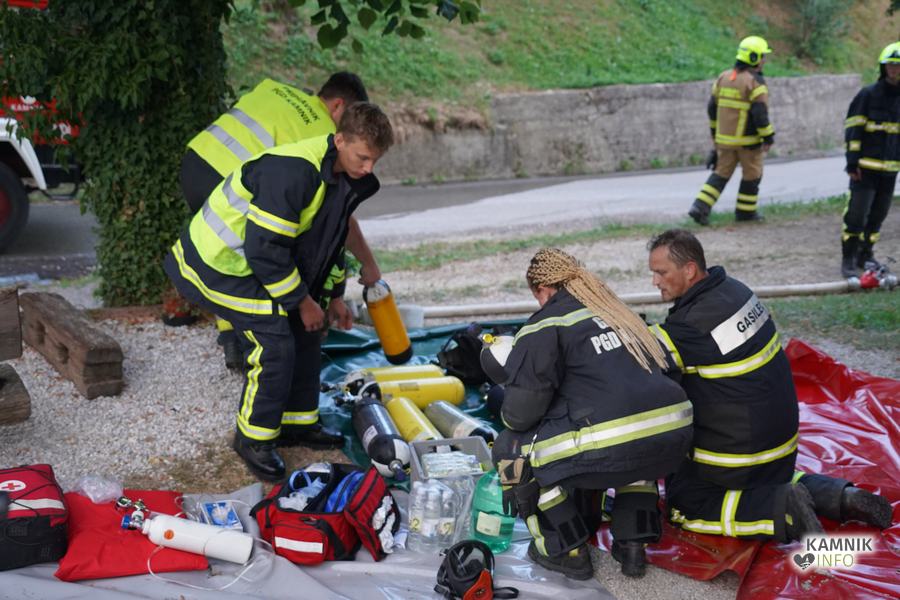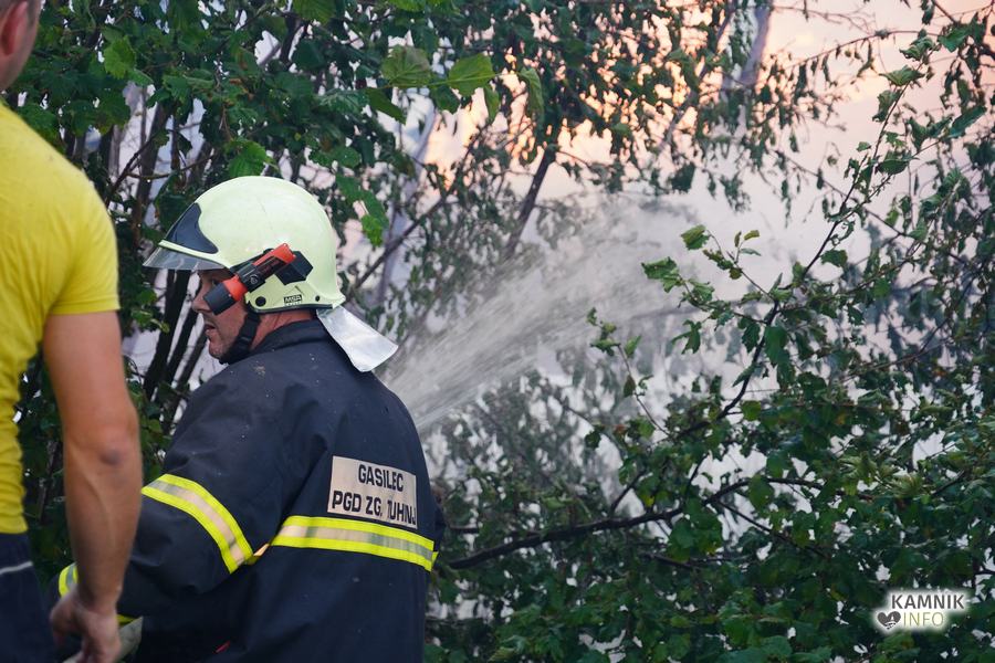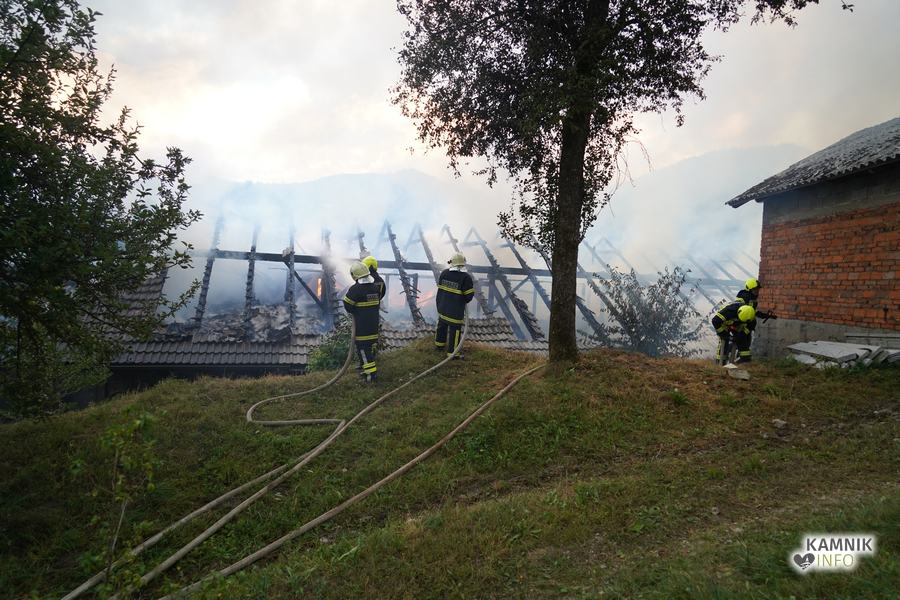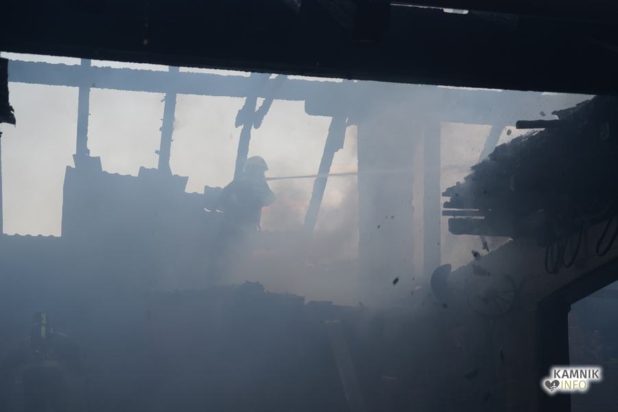 S plameni, ki so se iz ostrešja gospodarskega poslopja dvigali visoko proti nebu ter grozili, da v strnjenem naselju zajamejo še kak bližnji objekt, so se že čez nekaj minut, z domala vso razpoložljivo gasilsko ter tudi gradbeno mehanizacijo, spopadli gasilci prostovoljnih gasilskih društev Zgornji Tuhinj, Šmartno v Tuhinju, Kamnik, Srednja vas in Špitalič, posredno pa tudi gasilke in gasilci PGD Šmarca, ki so prevzeli dežurstvo v Kamniku.