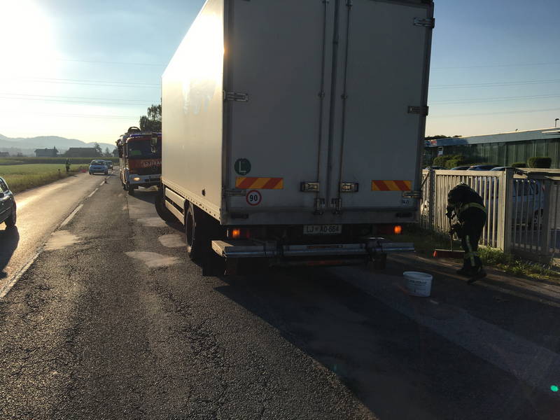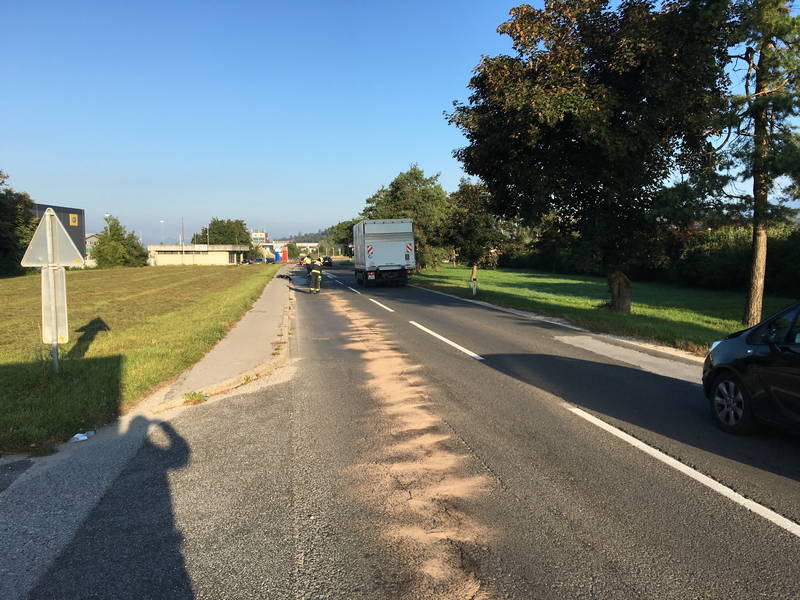 Danes zjutraj, ob 7.16, je na Korenovi cesti v Podgorju iz tovornega vozila iztekalo motorno olje.