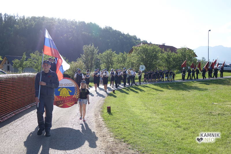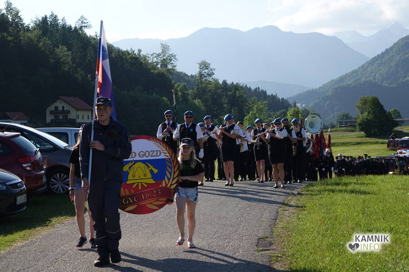 Slovesnost se je pričela z zborom gasilcev, godbe in gasilskih vozil na cesti Gozd-Laze, po kateri se je parada sprehodila mimo častnega odra do šotora, kjer je poveljnik razvrstil ešalon pred glavni oder. Godba Kamnik je pričela uradni del s slovensko himno, potem pa so bili k nagovoru vabljeni predsednik Gasilske zveze Kamnik Tomaž Zabavnik, predsednik PGD Gozd Simon Golob in župan občine Kamnik Matej Slapar.