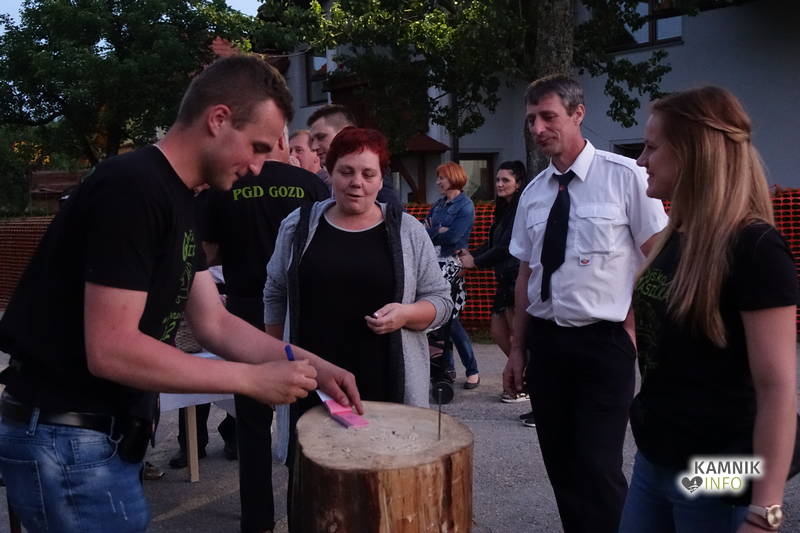 Po uradnem delu in predanem vozilu je nastopil čas za pravo vaško gasilsko veselico. Zbrane je zabaval ansambel Pogum, obiskovalci so se lahko preizkusili v raznih vaških družabnih igrah kot na primer zabijanje žeblja v hlod, merjenje pršuta ali pa so zgolj kupili srečko. Proti večeru se je družba ogrela in zapolnila plesišče, na katerem pa je bilo moč zapaziti tudi župana, kako se vrti na takte narodno-zabavnih skladb.