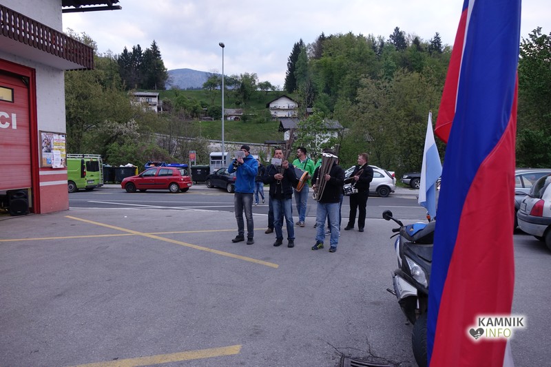 So pa stranjske gasilce zjutraj obiskali tudi godbeniki Godbe Stranje, ki so s svojim glasbenim nastopom oz. budnico še dodatno začinili prvomajski golaž in popestrili že tako zabavno jutranje oz. celonočno dogajanje v Stranjah.