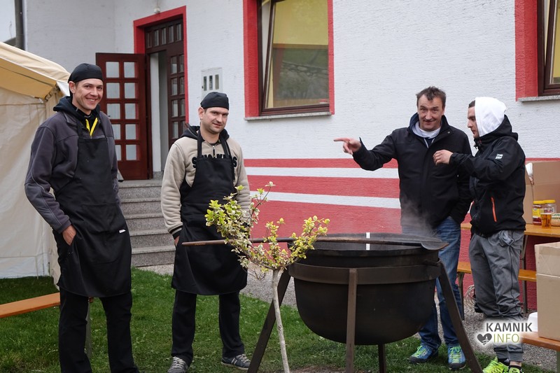 Tako kot lani, so gasilci in gasilke pod velikim kotlom, ki so ga postavili pri svojem gasilskem domu v Stranjah, zakurili že na predvečer prvega maja, kajti s kuhanjem tolikšne količine golaža je kar precej dela, saj je že ob rezanju čebule potrebno pretočiti kar precej solz. Kljub točenju solza, kurjenju in napornemu mešanju, pa je bilo vzdušje ob pripravi golaža prav veselo, skozi oči izgubljena tekočina pa hitro in na ustrezen način nadomeščena.