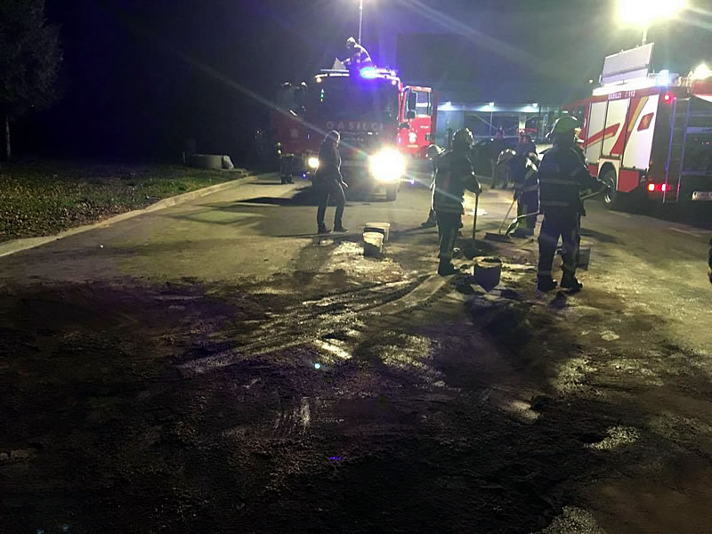 Po dveh manjših dopoldanskih intervencijah so morali gasilci danes še enkrat posredovati tudi v večernih urah, in sicer v naselju Potok pri Komendi, kjer je prišlo do razlitja hidravljičnega olja.