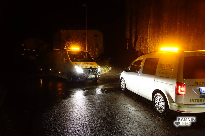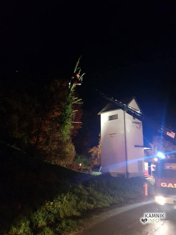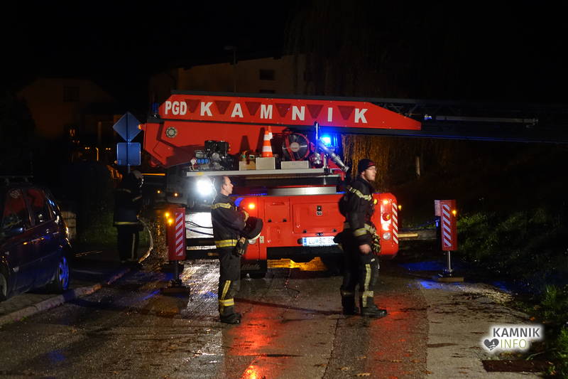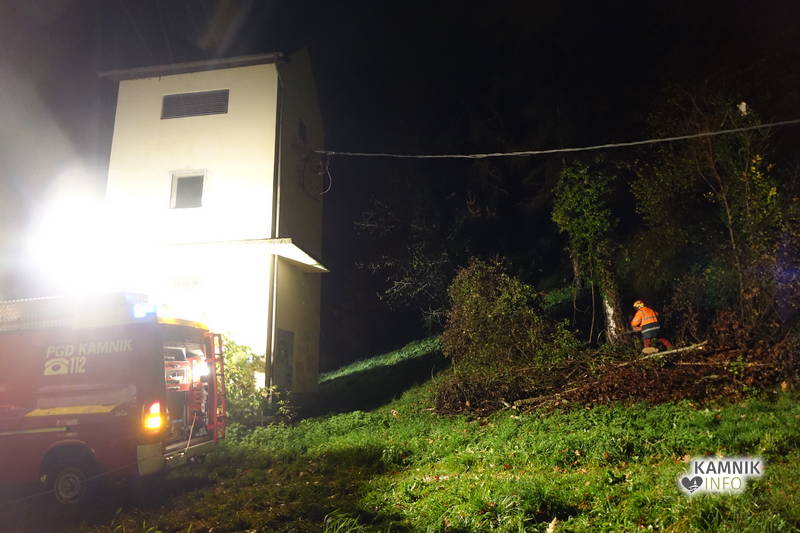 Kamniški gasilci in delavci Komunalnega podjetja Kamnik so bili včeraj okrog 22. ure obveščeni, da na Streliški ulici v Kamniku drevo nevarno ogroža transformatorsko postajo, zaradi česar je bilo, kljub deževni in vetrovni noči, v izogib padcu drevesa ter poškodbi transformatorske postaje, potrebno drevo interventno in nemudoma podreti.