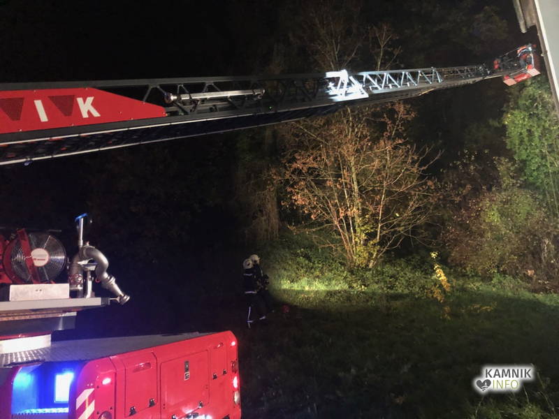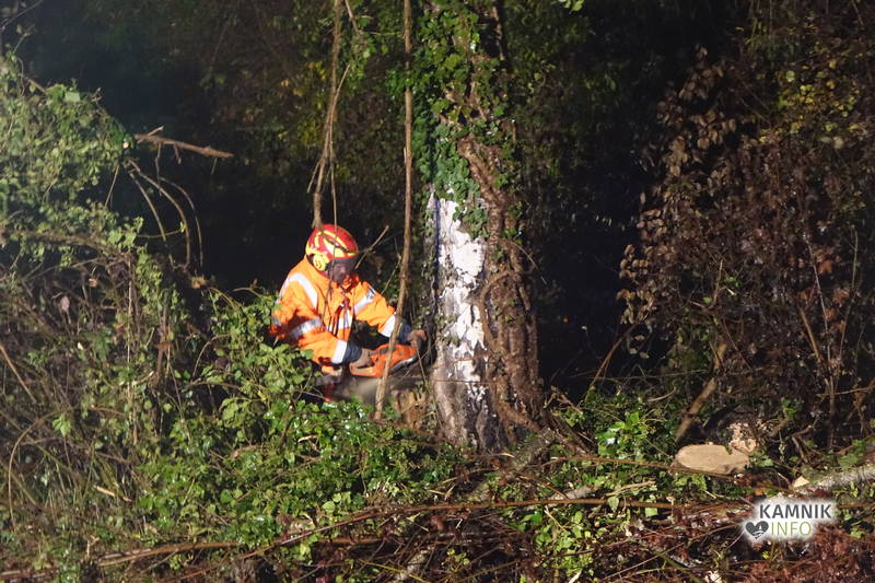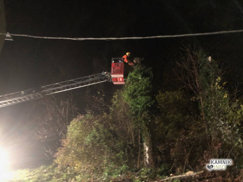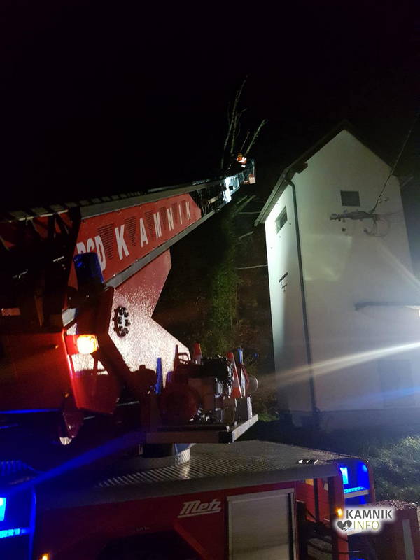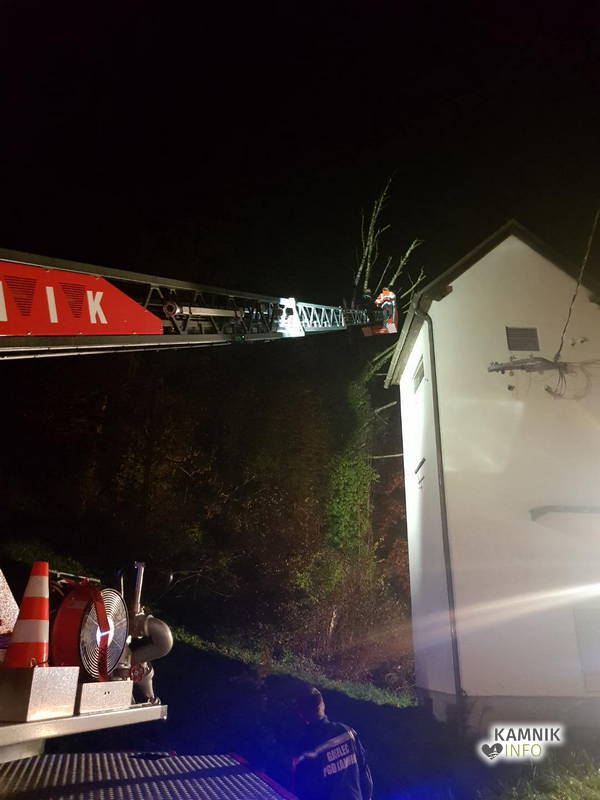S pomočjo gasilske lestve so gasilci najprej odžagali vrh drevesa, nato pa še deblo, za odstranitev ostankov podrtega drevesa pa so poskrbeli delavci Komunalnega podjetja Kamnik.