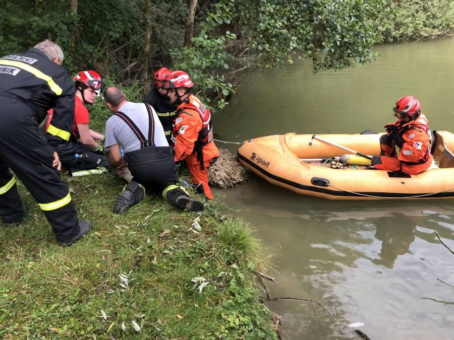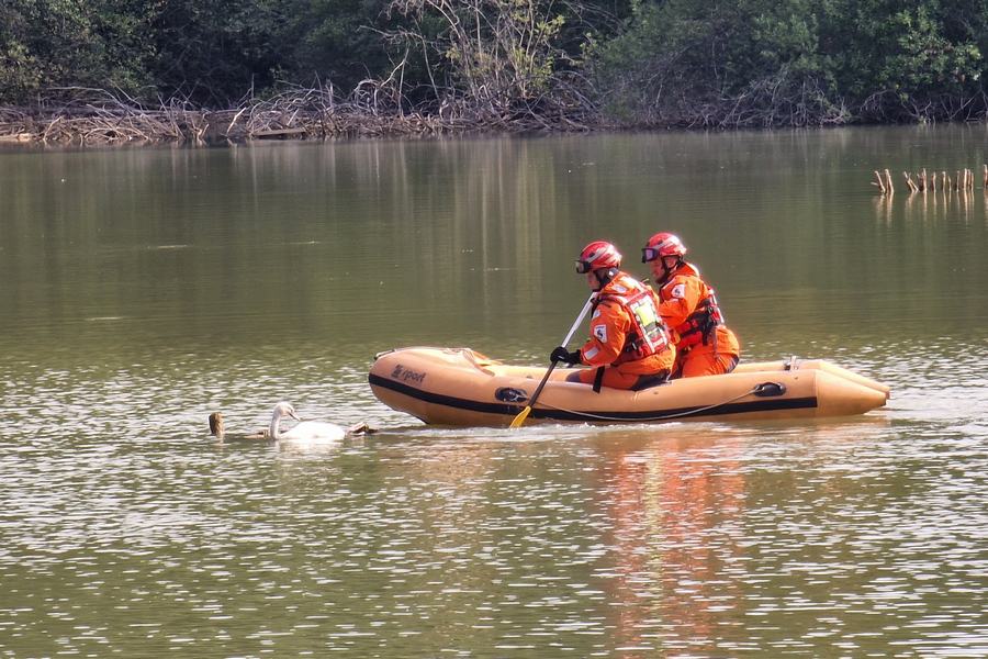 Kamniški gasilci so na jezeru Pristava pri Mengšu priskočili na pomoč poškodovanemu mlademu labodu, ki se je nesrečno zapletel v ribiško vrvico.
