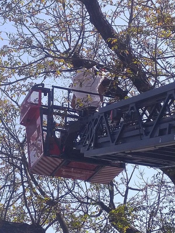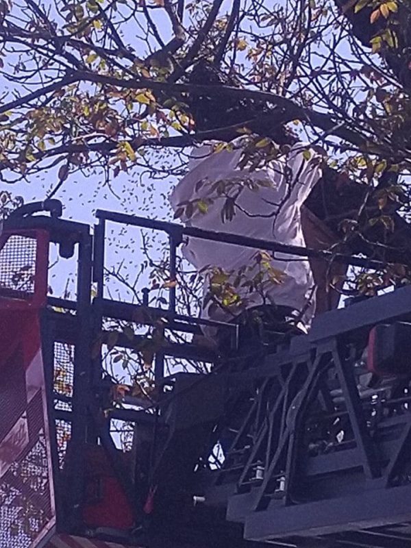 Da je bilo moč dostopiti do čebelic, je bilo potrebno odžagati dve veji, s čemer so gasilci čebelarju omogočili, da je uspešno zajel dva roja ter jih varno odstranil z drevesa.