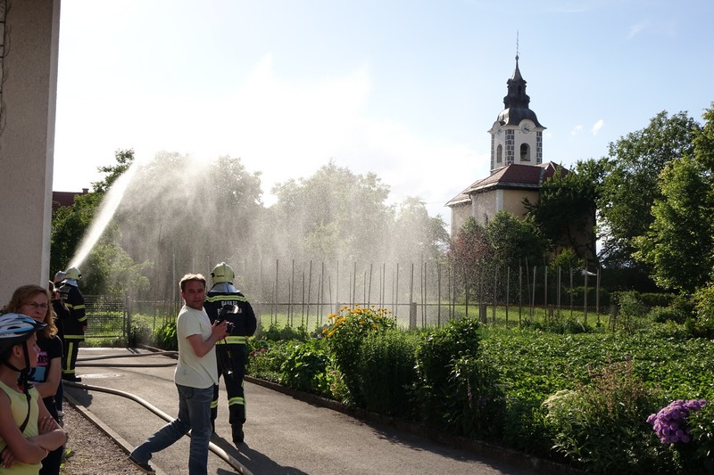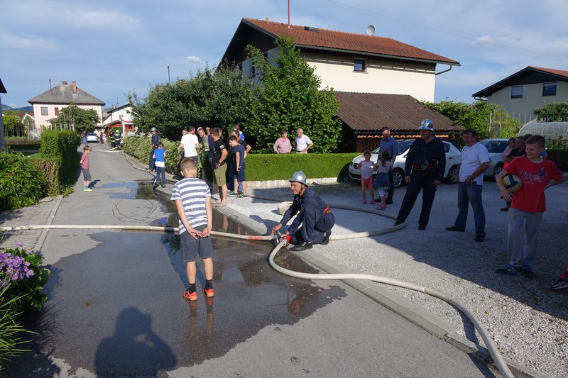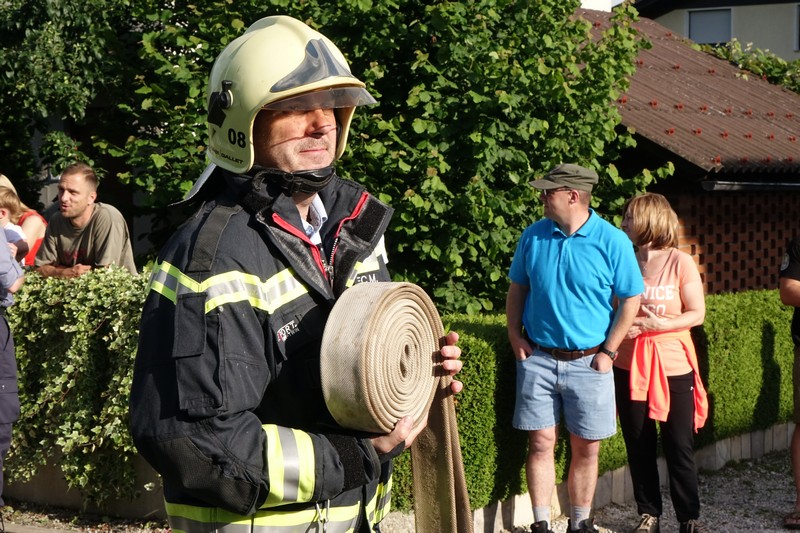 Pri vsem skupaj pa ni šlo, kot bi kdo utegnil zmotno misliti, za povsem navadno rojstnodnevno gasilsko „špricanje“ slavljenca, kakršna so med tovariši gasilci kar pogosta, ampak za razmeroma zahtevno gasilsko vajo v kateri je sodelovalo prek petdeset gasilcev.