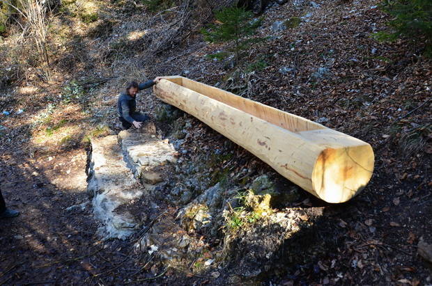 Pašna skupnost Velika planina je poiskala primerno drevo smreke, iz katerega je po starih merah subtilno izdolbel novo korito Stanko Kregar iz Bistričice. Marko Balantič je novo mojstrovino pripeljal na mesto, položil staro korito k počitku in namestil novega. Aleš, Miran, Franci in Miha so prestavljali kamne v podstavku in spotoma gledali na »vaservago«. Malo so poropotali z motorno žago, nanovo uredili ležišče še starega žleba, začepili korito ter počakali, da je studenec zažuborel v malo drugačne nove čase z večno melodijo o lepem in nikoli izpetem.