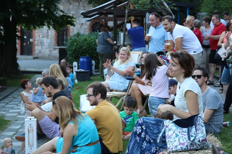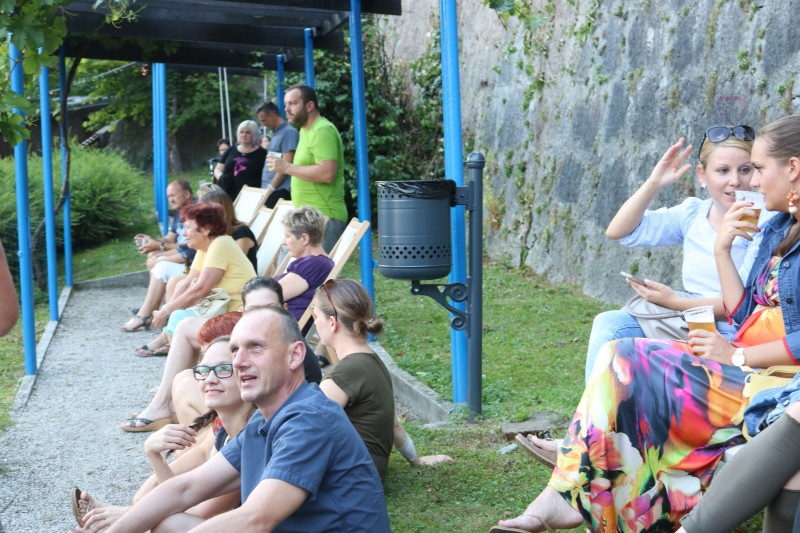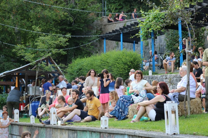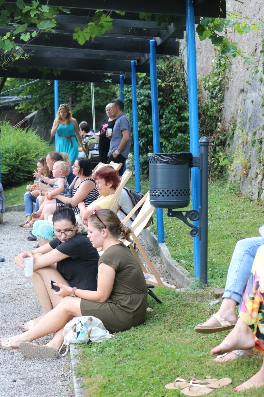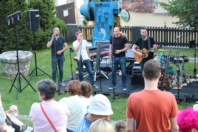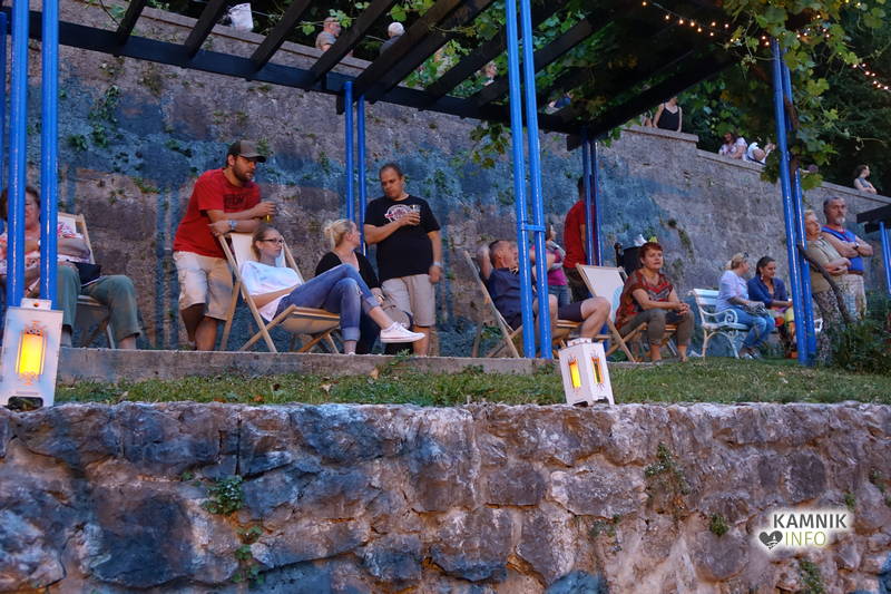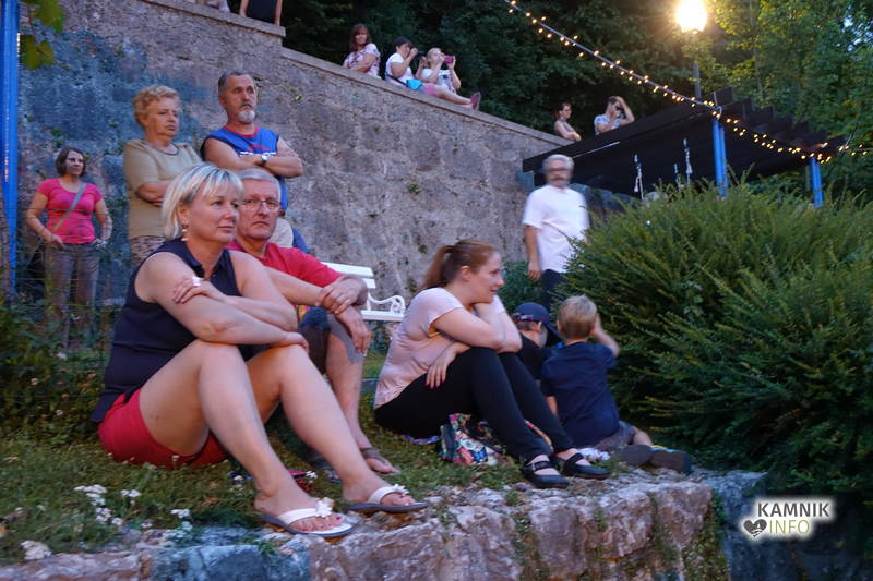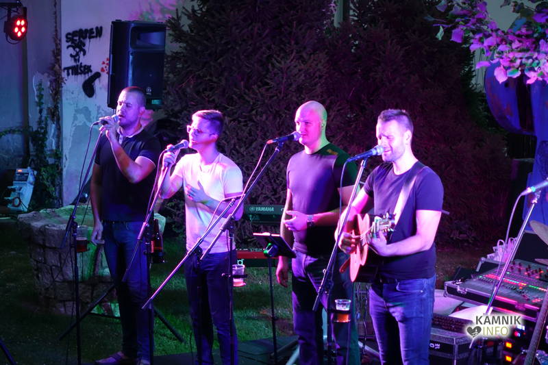 Skupina Kvatropirci nam je s priredbami dalmatinskih pesmi, ki jih ob diskretni spremljavi kitare pojejo izvrstni pevci, pričarala še vonj po soli, valovih in Dalmaciji. Tudi oni niso pozabili, da imamo v Kamniku radi tudi (in najprej) slovenske viže. Ja res znajo lepo zapeti… Še dobro, da je bilo izvirno poskrbljeno za številne ploske prostorčke kamor se je dalo nasloniti ali sesti; ležalnike, senene bale, klopce ali pa kar na prijetno topel kamnit tlak. Plaža Kamnik pod Alpami.