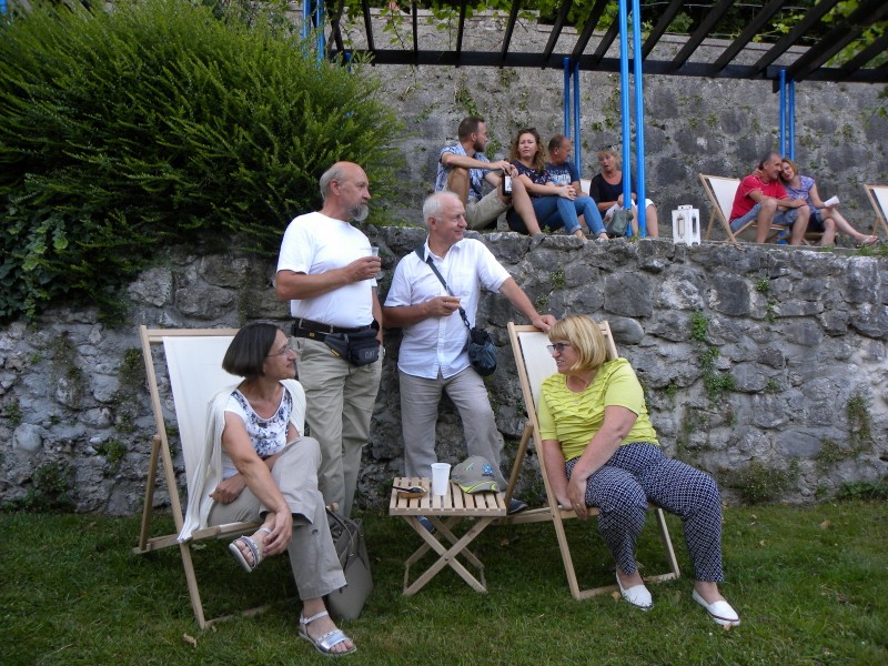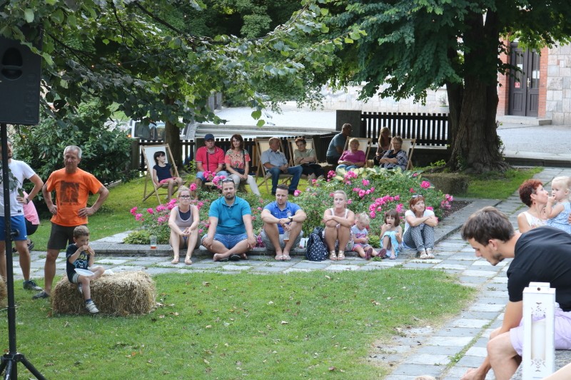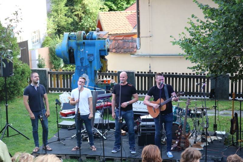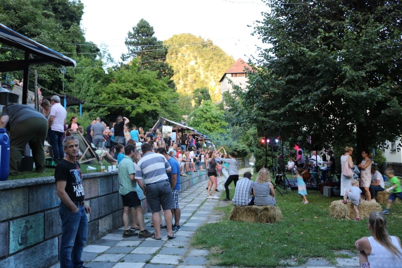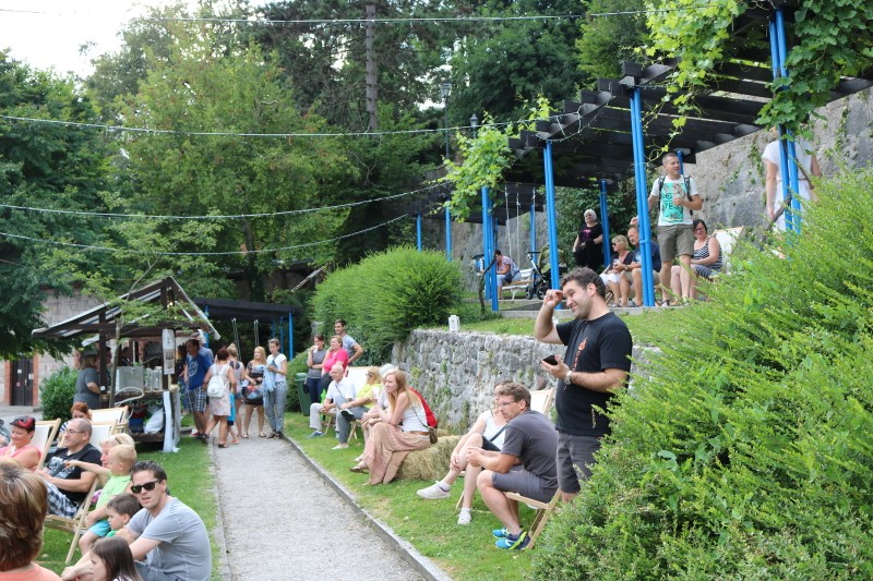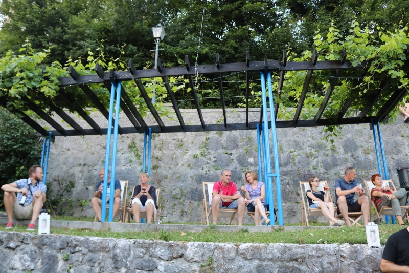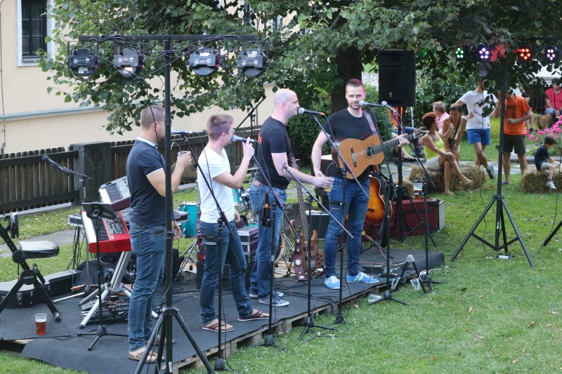 Skupina Kvatropirci nam je s priredbami dalmatinskih pesmi, ki jih ob diskretni spremljavi kitare pojejo izvrstni pevci, pričarala še vonj po soli, valovih in Dalmaciji. Tudi oni niso pozabili, da imamo v Kamniku radi tudi (in najprej) slovenske viže. Ja res znajo lepo zapeti… Še dobro, da je bilo izvirno poskrbljeno za številne ploske prostorčke kamor se je dalo nasloniti ali sesti; ležalnike, senene bale, klopce ali pa kar na prijetno topel kamnit tlak. Plaža Kamnik pod Alpami.