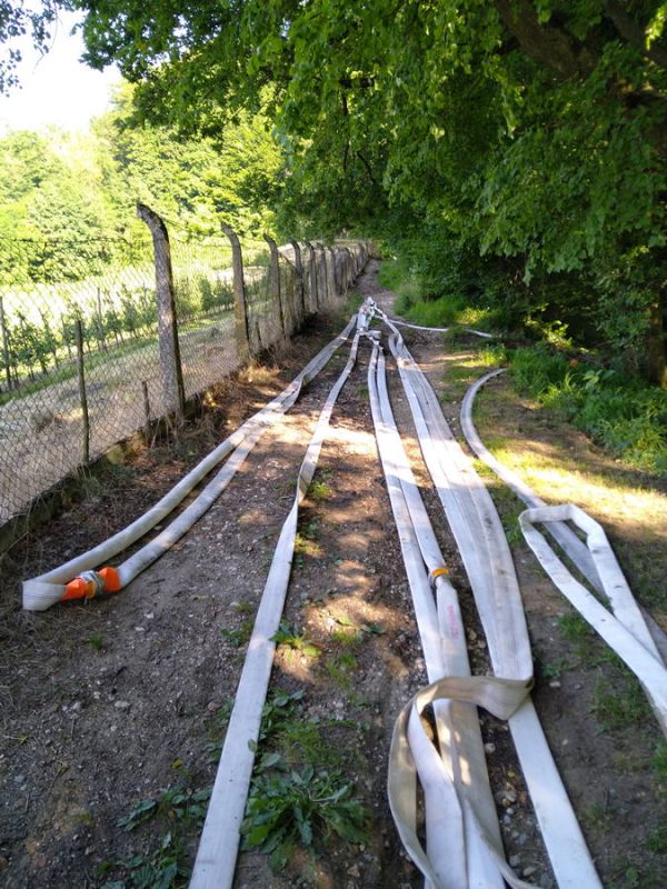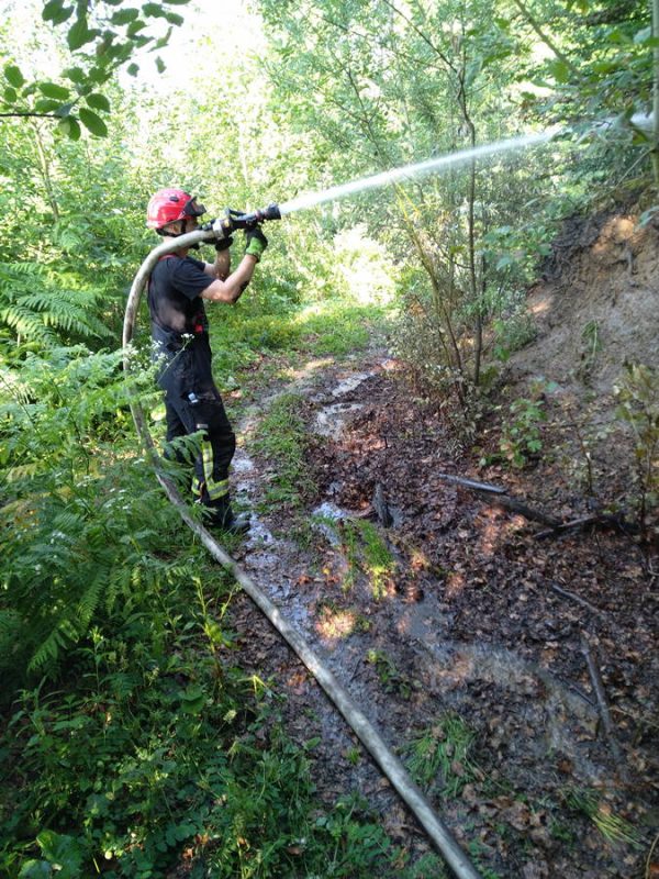 Tleča podrast v gozdu nad gradom Zaprice je kamniškim gasilcem minuli vikend povzročila kar precej dela, saj so morali do požarišča napeljati prek 500 metrov cevi, da so lahko požar dokončno pogasili.