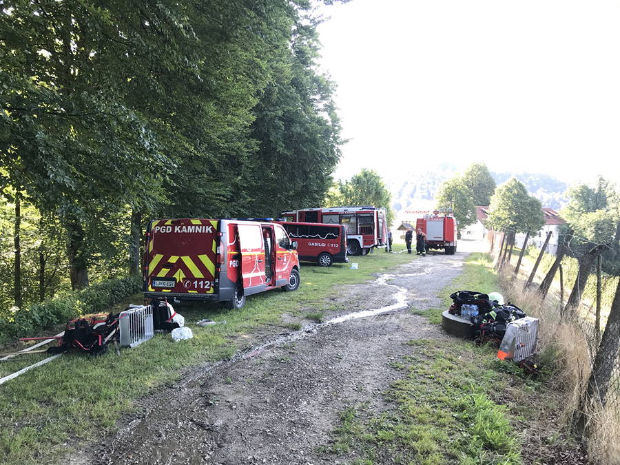 Že v nedeljo zjutraj so bili namreč znova obveščeni, da na pogorišču prejšnjega dne ponovno tli, zato so gasilke in gasilci PGD Kamnik do tlečega območja napeljali kakih 500 metrov gasilskih cevi, območje temeljito zalili z vodo obenem pa samo požarišče temeljito prekopali.