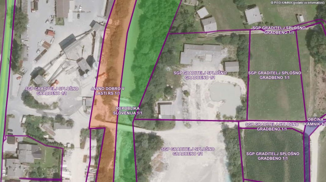 Podjetje Graditelj ima zagotovo pravico, da svoj proizvodni obrat ogradi in zaščiti pred nepooblaščenim dostopom, težava pa je v tem, da podjetje ne ograjuje samo svojega zemljišča, ampak tudi zemljišča, ki so javno dobro oz. last Republike Slovenije, predvsem pa onemogoča nemoteč dostopa do obrežja reke Kamniške Bistrice, kar je sporno, bržčas pa tudi neskladno z Zakonom o vodah. Podjetje si namreč na ta način nekako prilašča tudi zemljišča, ki niso njihova, iz orto-foto posnetkov in podatkov, ki se nahajajo na Prostorskem informacijskem sistemu občin, pa je moč razbrati, da nekateri objekti celo deloma stojijo oz. posegajo na zemljišče, ki je javno dobro.