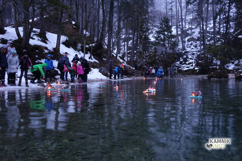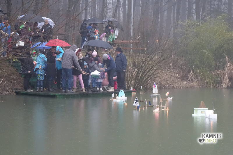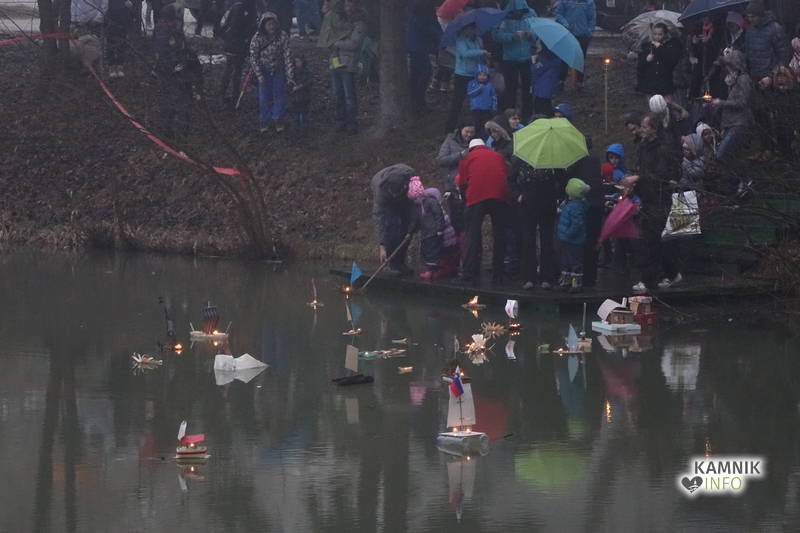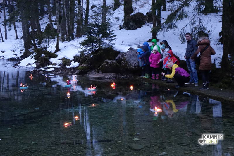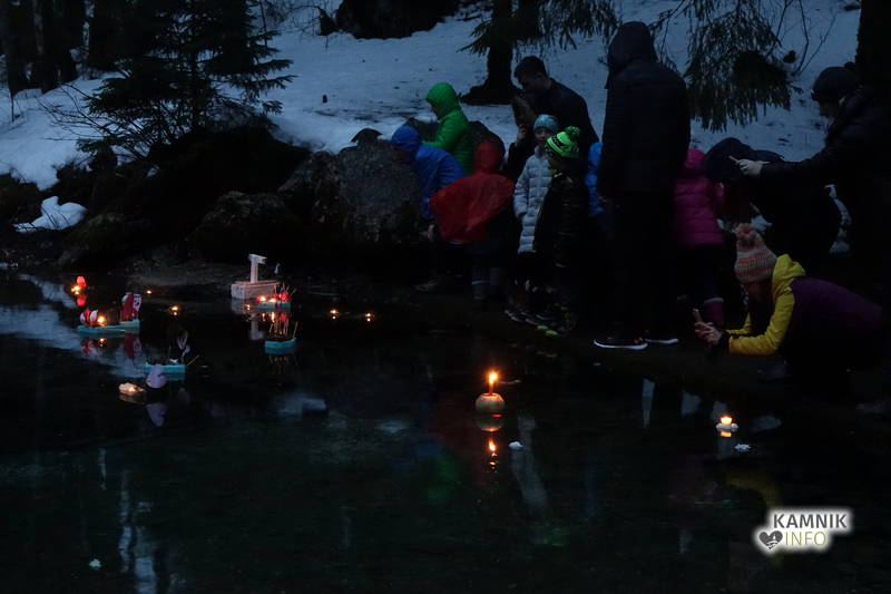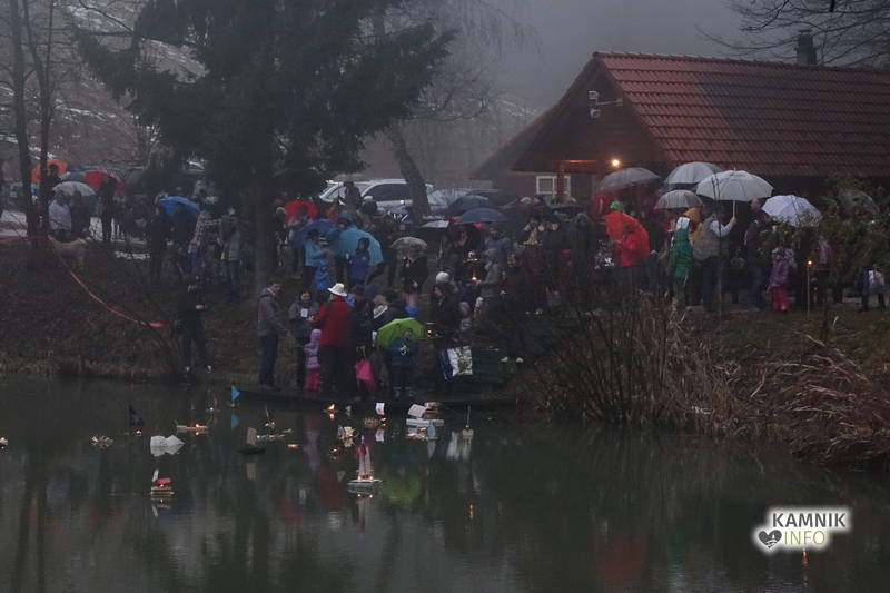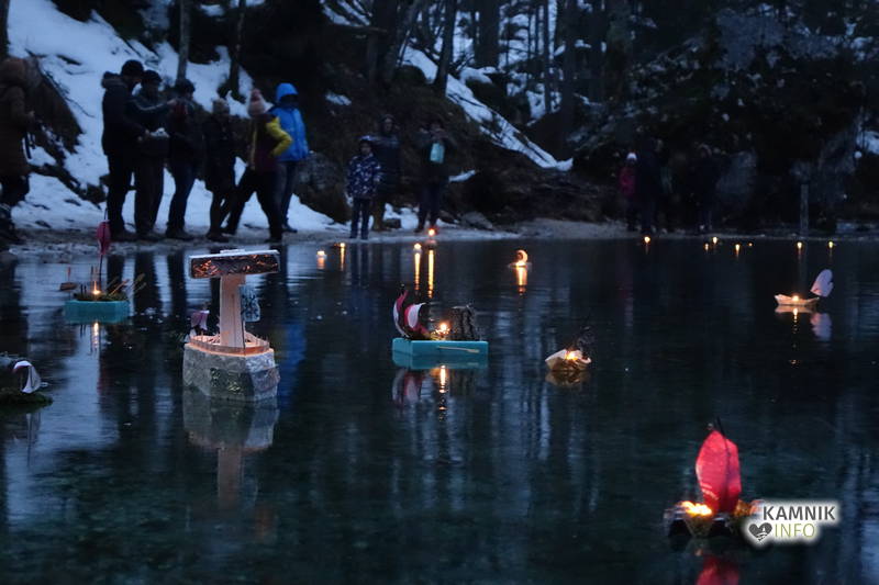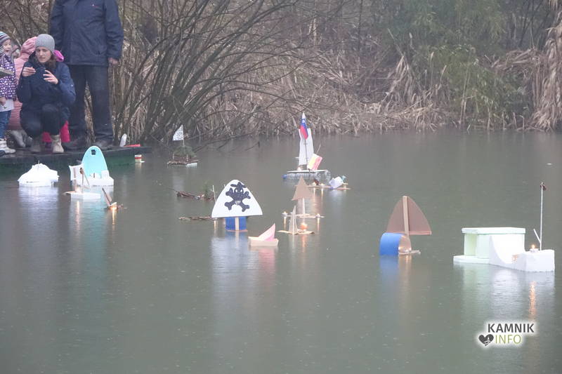 Vreme na predvečer gregorjevega letos, spričo megle in dežja sicer ni bilo najbolj prijazno, vseeno pa so na ribniku Križ in jezercu ob izviru Kamniške Bistrice znova zaplule barčice z lučkami, zavoljo vremena pa jih je bilo občutno manj kot v prejšnjih letih.