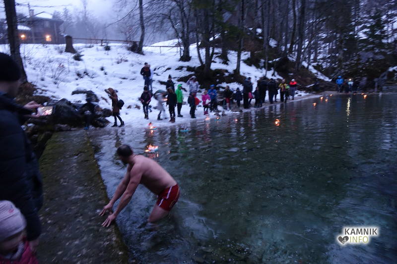 Je pa bilo zato med plavajočimi lučkami moč opaziti tudi čisto drugačnega »Gregorja«, ki si je med barčicami privoščil skorajda šestminutno osvežitev v tamkajšnji izvirski vodi, ki naj bi imela vsega tri stopinje.