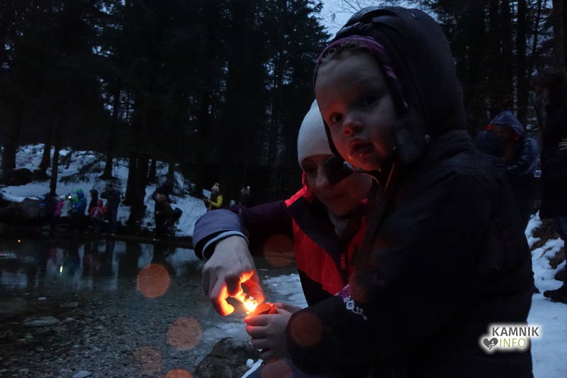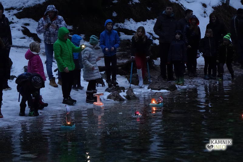 Vse bolje je obiskan tudi vsakoletni spust gregorčkov v Kamniški Bistrici, kjer Turistično društvo Kamniška Bistrica pred tem običajno pripravi tudi delavnico izdelave gregorčkov, je pa mrzlo in mokro vreme tudi v Bistrici letos terjalo svoj davek, tako da je bilo plavajočih lučk v jezercu nekoliko manj kot lani.