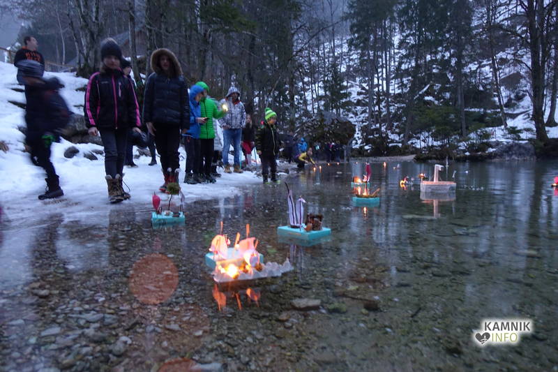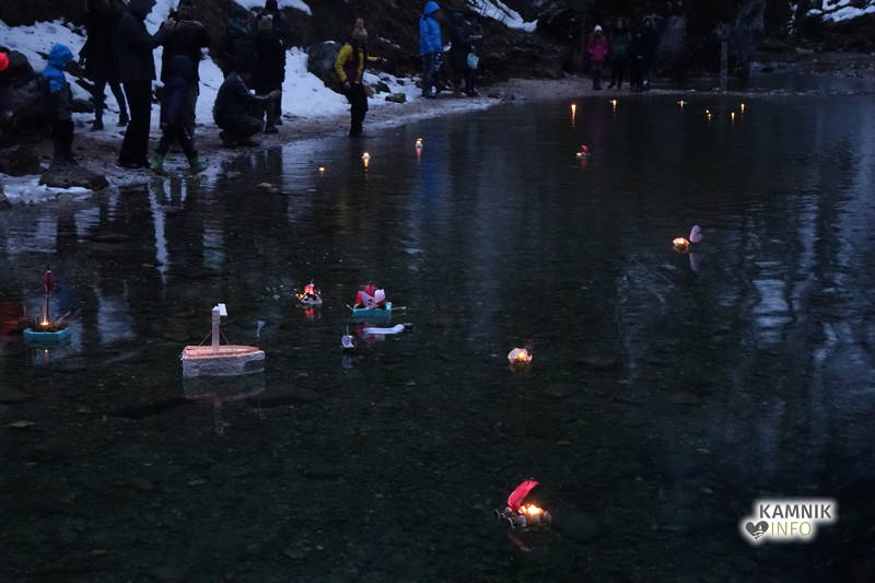 Sinoči, na predvečer gregorjevega, ki je nekdaj veljal za prvi pomladanski dan, po starem izročilu pa je danes, ko goduje Gregor, tudi izvirni domači praznik zaljubljencev, so na ribniku Križ in ob izviru Kamniške Bistrice znova zaplule najrazličnejše barčice z lučkami.