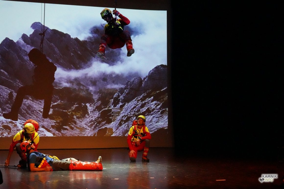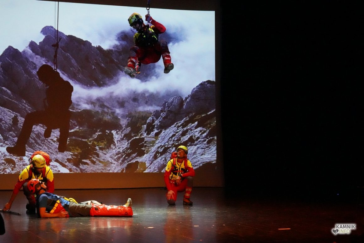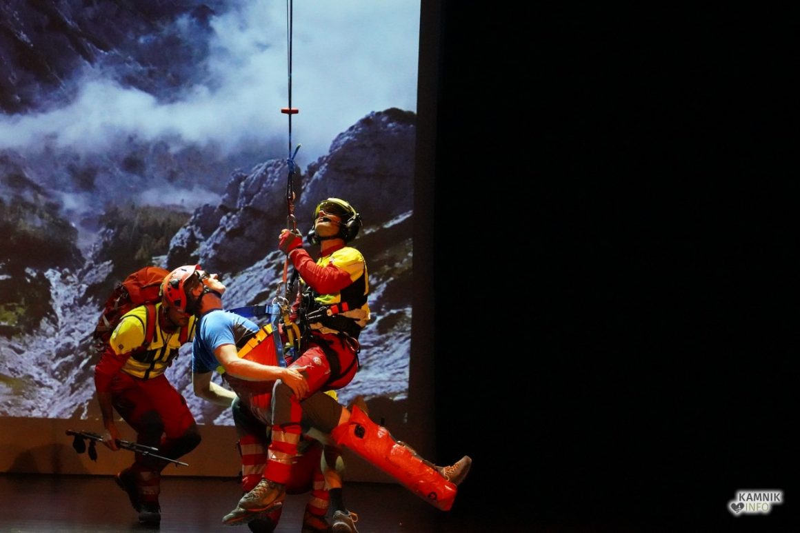 V veliko veselje obiskovalcev sinočnje prireditve, ki so se v veliko dvorano Doma kulture Kamnik zgrnili z vseh koncev Slovenije, so kamniški gorski reševalci, z duhovitim dramskim prikazom reševanja v nekdanjih časih, s katerim so se sočasno na izviren in spoštljiv način poklonili tudi spominu na Franceta, Toneta, Petra in Lojzeta Erjavška, legendarne Jerinčkove brate, ki so z gora nad Kamniško Bistrico, ljudi reševali še prej, preden so postali prvi »uradni« gorski reševalci na Kamniškem, delček reševanja uspeli prenesti tudi v samo dvorano.