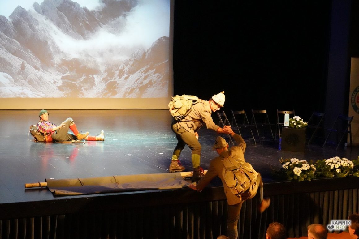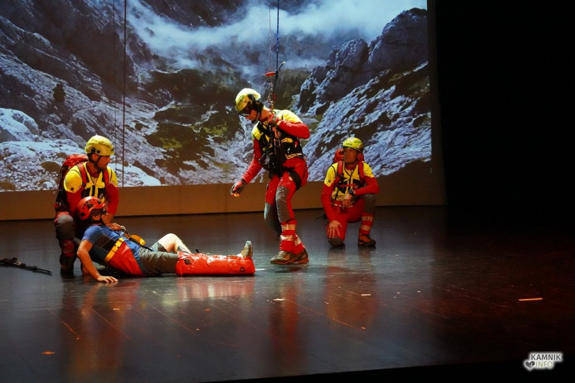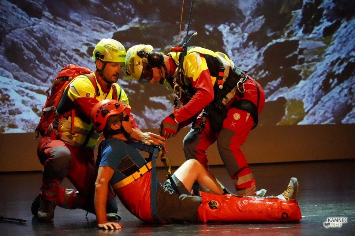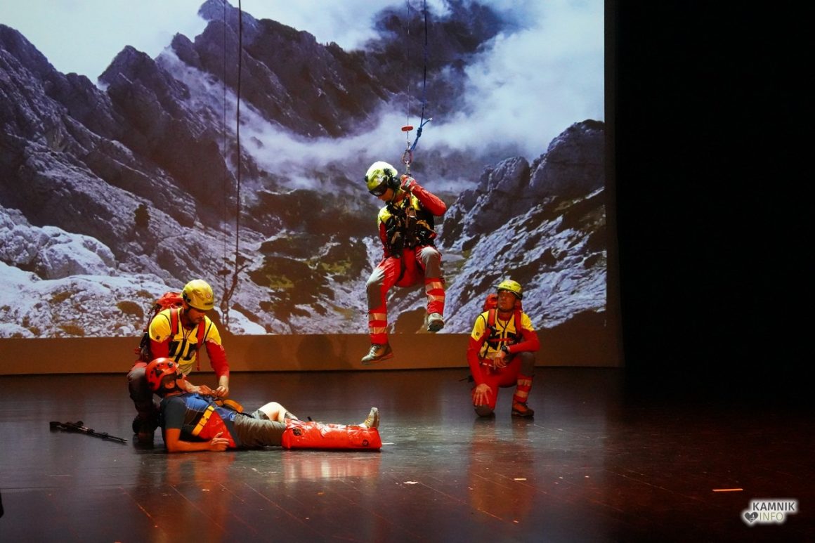 V veliko veselje obiskovalcev sinočnje prireditve, ki so se v veliko dvorano Doma kulture Kamnik zgrnili z vseh koncev Slovenije, so kamniški gorski reševalci, z duhovitim dramskim prikazom reševanja v nekdanjih časih, s katerim so se sočasno na izviren in spoštljiv način poklonili tudi spominu na Franceta, Toneta, Petra in Lojzeta Erjavška, legendarne Jerinčkove brate, ki so z gora nad Kamniško Bistrico, ljudi reševali še prej, preden so postali prvi »uradni« gorski reševalci na Kamniškem, delček reševanja uspeli prenesti tudi v samo dvorano.