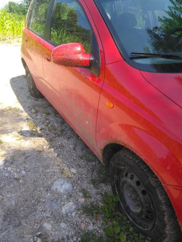 Bralci našega portala so nas obvestili, da se ob jezu na reki Kamniški Bistrici v Šmarci že kaka dva tedna nahaja zapuščeno in neregistrirano osebno vozilo Chevrolet Kalos rdeče barve, ki ga nadebudna lokalna mladež ob večerih uporablja za vožnjo oz. dirkanje po tamkajšnjih poteh oz. dirkaško »oranje« kmetijskih površin.