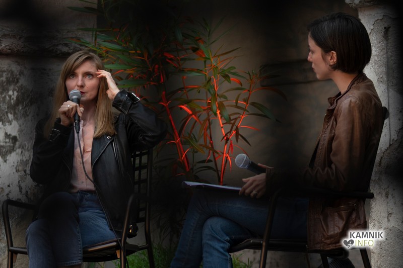 Pisateljica se je v samostanu Mekinje pogovarjala s Pio Prezelj o postopku nastajanja romana, miselnih procesih, o antagonistih in protagonistih, zgodovini bivše Jugoslavije in seveda, o ljubezni.