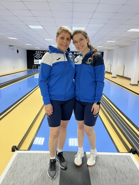 Ženski pari so bili: Irena Koprivc z Leo Drnovšek, Noemi Živković z Marijo Ravnikar, Lidija Pirman s Tadejo Kokalj in Nataša Radić z Marijo Ahačič Premrl. Naša dekleta so nastopila drugi dan in sicer kot prva. Irena in Lea sta igrali izvrstno in obe presegli mejo 600 podrtih kegljev. Irena je s 630 podrtimi keglji celo postavila svoj uradni osebni rekord, Lea pa se je ustavila pri 605 podrtih kegljih. Skupni rezultat 1235 je bil previsoka ovira za vse ostale, saj je druga dvojica zaostala kar 57 kegljev, tretja pa 83 kegljev. Vse do zadnjih nastopov sta bili blizu medalji tudi Noemi in Marija. Žal so jima zmanjkali vsega 4 keglji in sta bili peti. Lidija in Tadeja sta na 10.mestu za medaljo zaostali 21 kegljev, Nataša (551) in Marija AP (541) pa sta imeli zelo slab dan in na koncu osvojili 17.mesto.