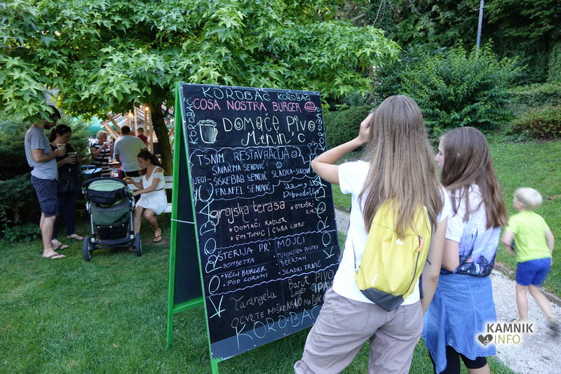 Za gostinsko ponudbo dobro razpoložene množice so poskrbeli Mangoop Burger z novostjo, burger Cosa nostra, Tsnim restavracija z arabsko hrano, Vratarnica – Ošterija Pr’Mojci z Okusi Kamnika, z dodatkom trniča je navduševal tudi Korobač, medtem ko je za sladkosnede skrbela Tarangela – hiša slaščic. Seveda pa so gostinci poskrbeli tudi za pijačo. Tako so bili na voljo ponudba Grajske terase na Starem gradu, pivo Menin’c in pivo Barut.