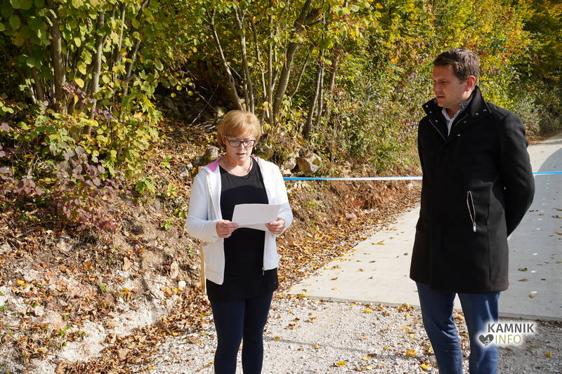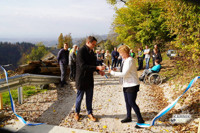 V imenu krajanov se je Občini Kamnik, Komunalnemu podjetju Kamnik in vsem, ki so na različne načine pripomogli, da je bil plaz hitro in kvalitetno saniran, zahvalila Olga Osolnik, ki je skupaj z županom tudi simbolno prerezala trak.
