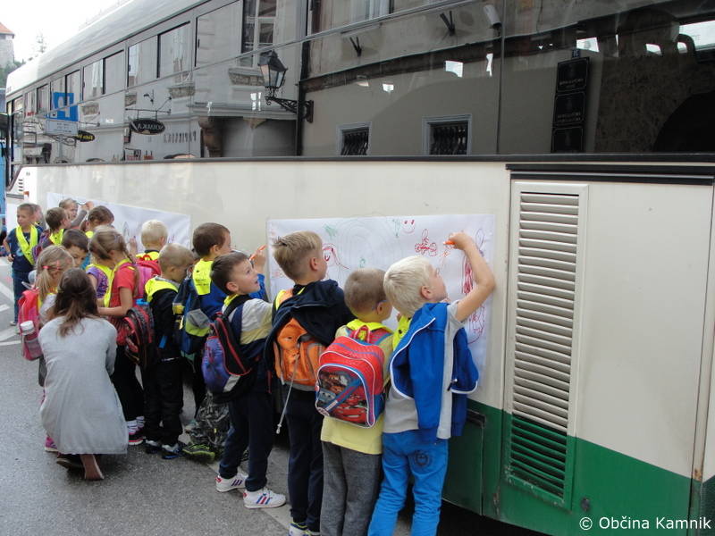 Kot rečeno, smo se tednu mobilnosti pridružili tudi v Občini Kamnik. Otroke iz oddaljenih šol smo do Glavnega trga pripeljali brezplačno, z javnim prevozom (avtobusom), ki ga je omogočilo podjetje Kam Bus, d.d., po ulicah srednjeveškega mesta pa je »čuha-puhal« vlak Arboretuma Volčji Potok.