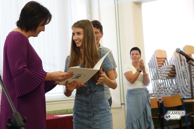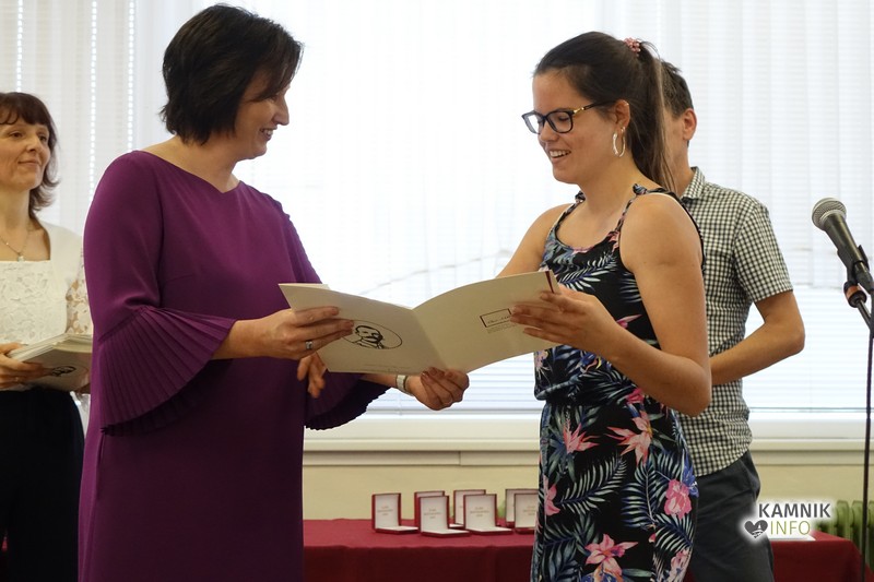 Zlati poklicni maturantje Jan Sašek, Lara Pintar, Zala Cotman, Anja Kramar, Maja Pestotnik, Maša Peterka in Urša Prosen ter diamantne maturantke Nana Balantič, Katja Erdani, Brina Tič, Petja Matjan Zupan in Ana Škarja so prvi prevzeli svoja odlična spričevala, prejeli pa so tudi pohvale za izjemen splošni uspeh in zlate cekine.