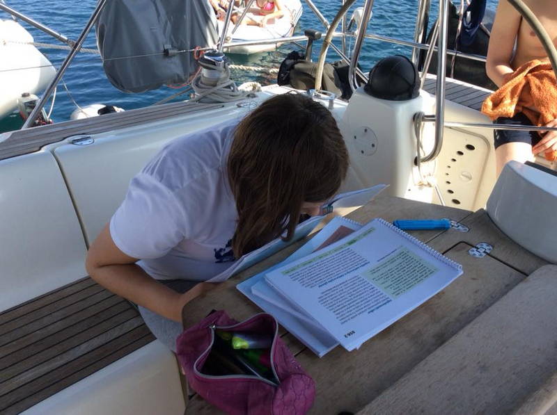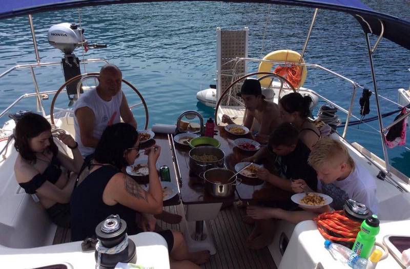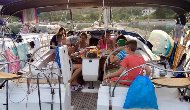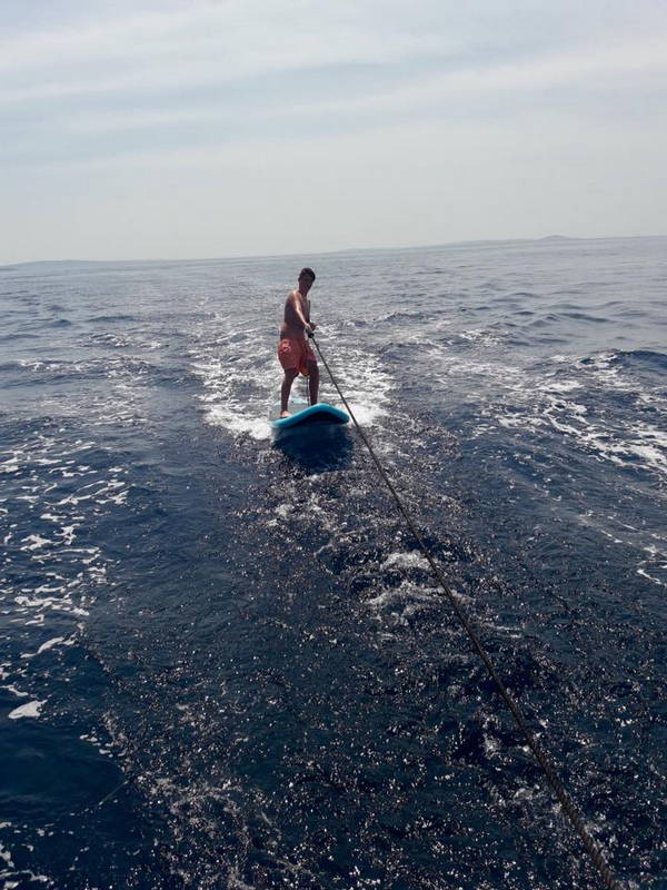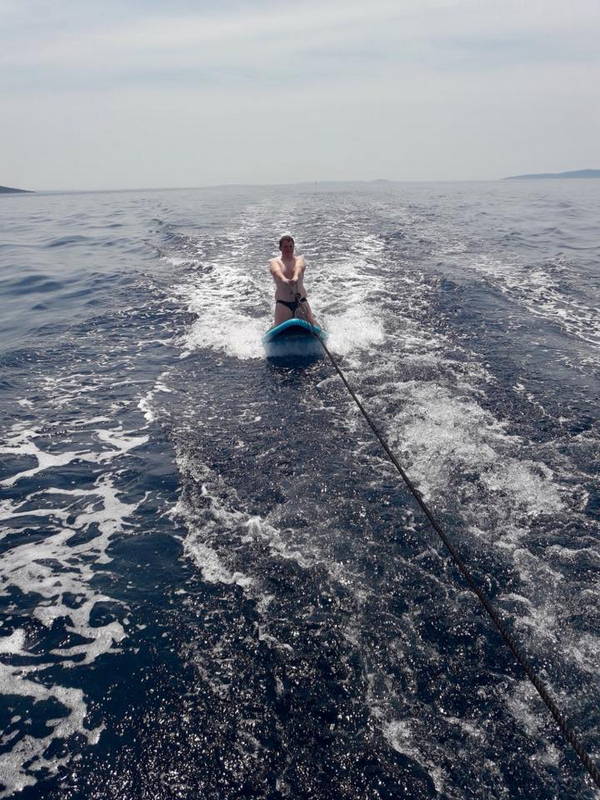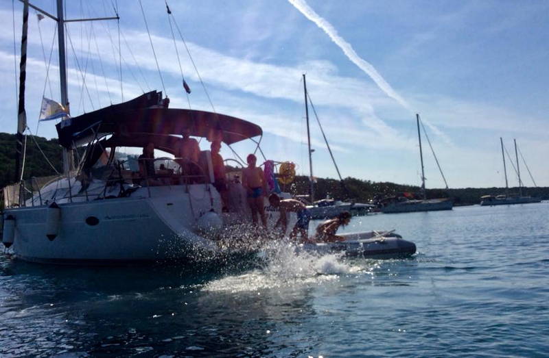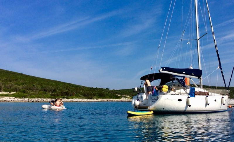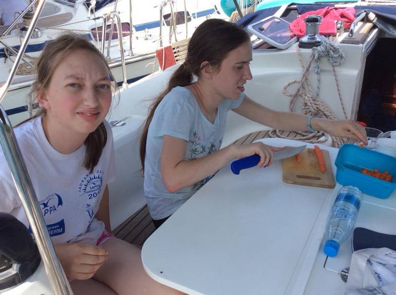 Zajtrku je sledila učna ura z delovnim zvezkom JZJ 2018. Naredil se je čudovit dan idealen za kopanje, veslanje, supanje, druženje. Kmalu po 11. uri so jadrnice z odprtimi jadri odplule v smeri Lošinja. Sledil je skupni privez v uvali Radiboj na Lošinju, kosilo in spet vse morske radosti znova. Kar prehitro je prišel čas za odhod.