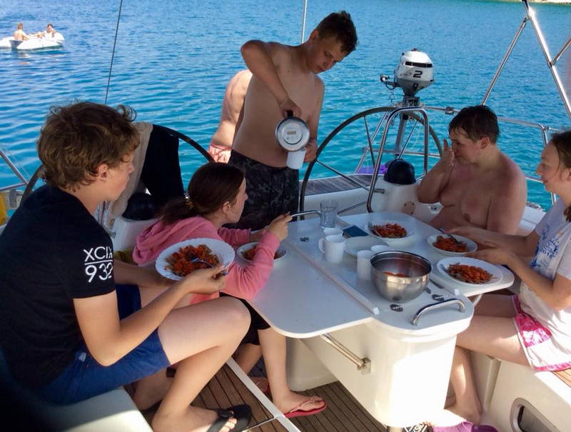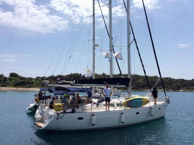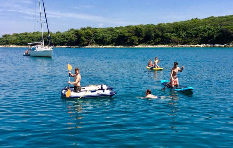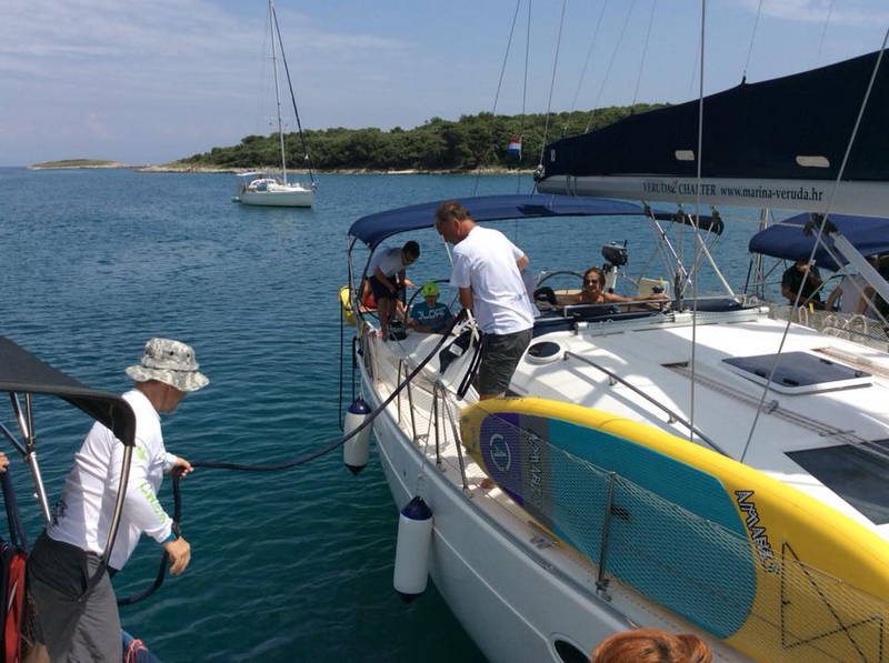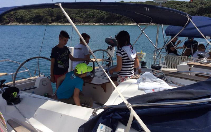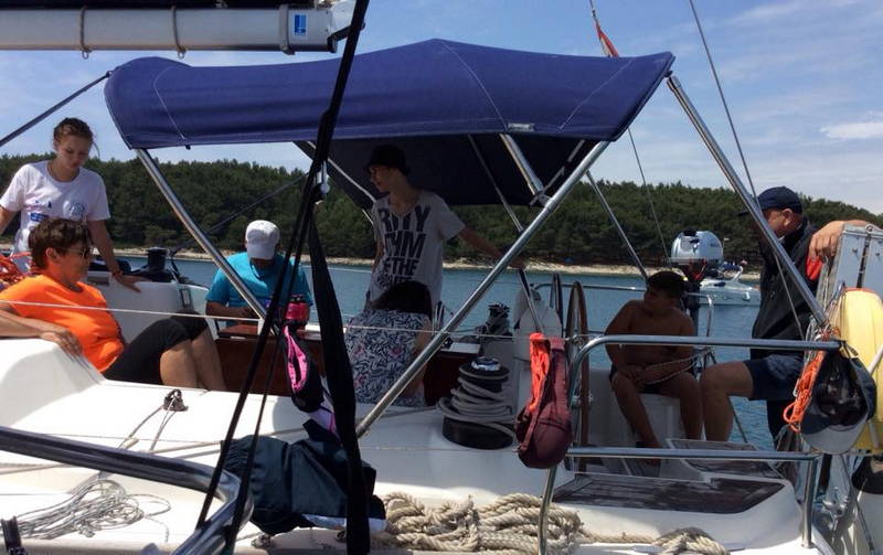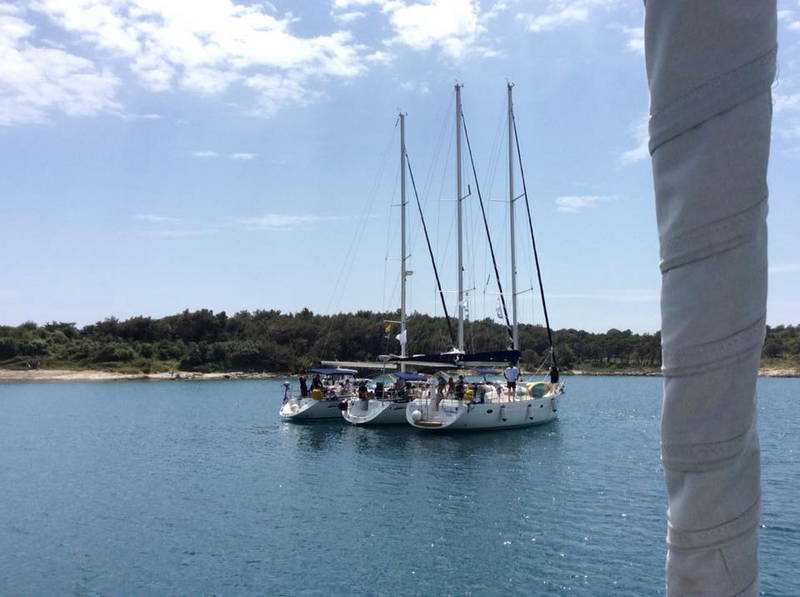 V zalivu smo ponovno naredili skupni vez. Po kosilu in kulski vodni rekreaciji je prišel čas za povratek v marino Veruda. Kar prehitro je sledilo izkrcanje in neizogibno slovo. Zadovoljni udeleženci domov, prav tako zadovoljna posadka pa je pripravila jadrnice. Jutri je nov dan, drugi otroci, enaka volja, isto sonce, nov veter, druge smeri…