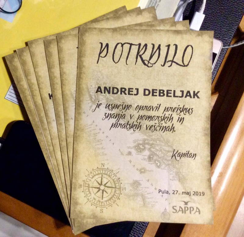 Skipperji posameznih bark so nato mladim mornarjem izročili Potrdila o uspešno opravljenem preiskusu znanja v pomorskih in piratskih veščinah.