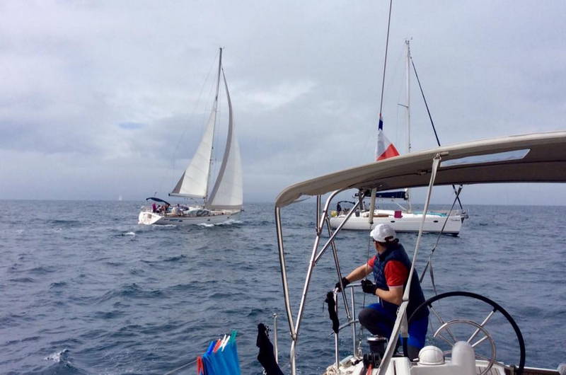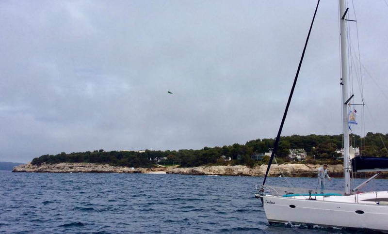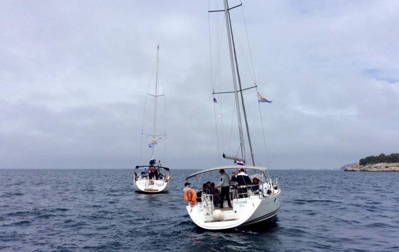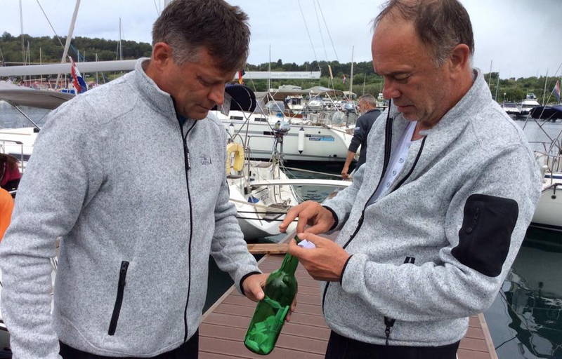 Kot da bi oblaki vedeli, da moramo steklenico želja odpeljati na odprto morje, so se umaknili in posijalo je sonce. Naredili smo še zadnje skupinske fotografije, potem pa nismo več izgubljali časa. V gosjem redu smo zapustili marino in odpluli proti svetilniku Porer. Pihal je pravi veter in jadrnice so ena za drugo dvignile jadra. Na sredini poti smo zapluli v krog in na sredino odvrgli steklenico z skritimi željami udeležencev.