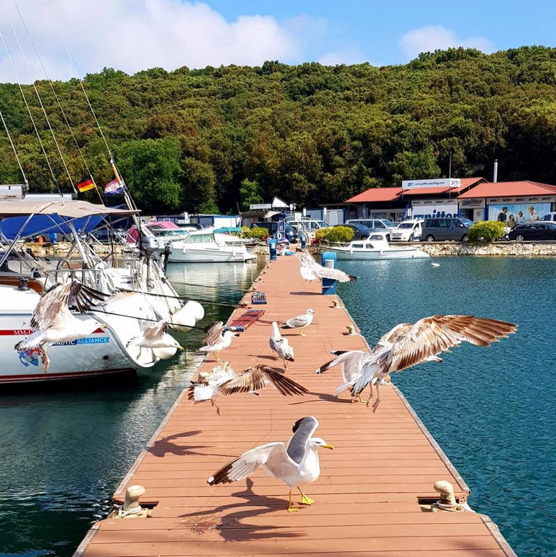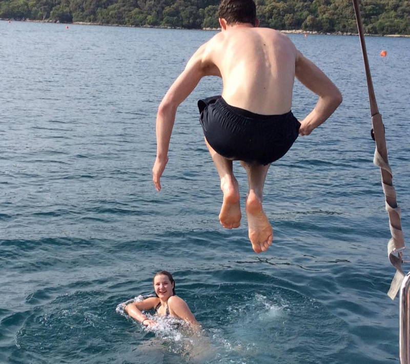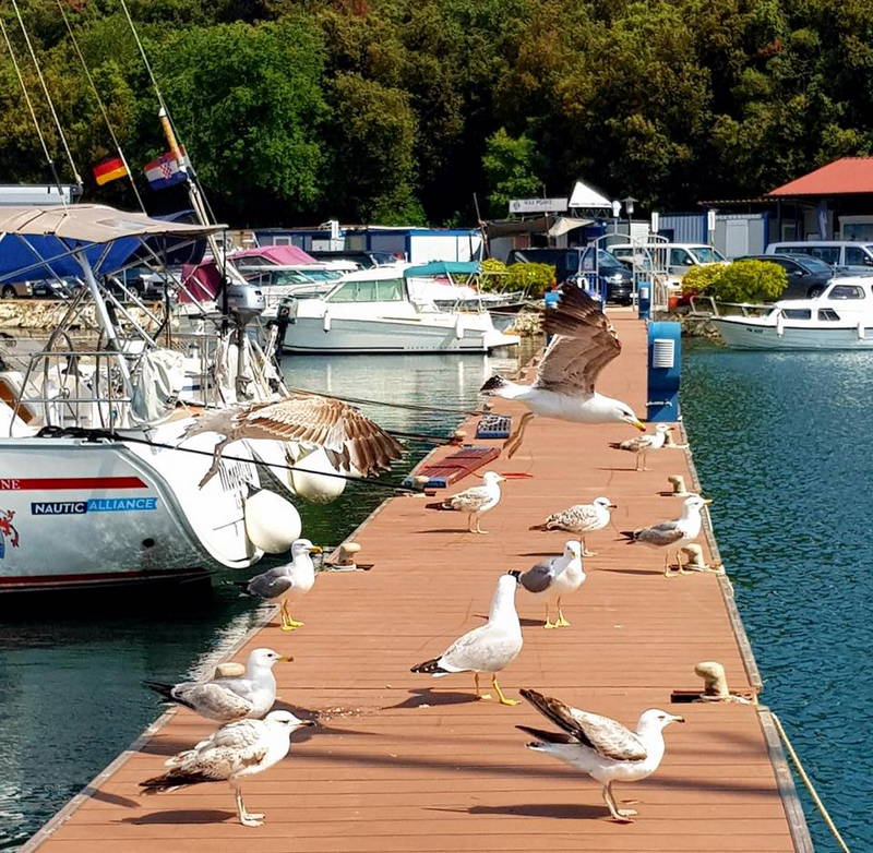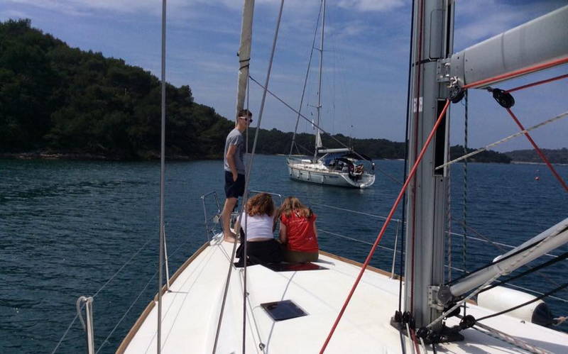 Nato smo odjadrali v različnih smereh in si po kakšni uri plovbe poiskali miren zaliv, kjer smo se privezali na boje. Lepo vreme je kar trajalo in vztrajalo, zato ni bilo ovir za veslanje s čolni, supanje in kopanje. Vmes smo si vzali čas za pripravo kosila. Do pol šestih so bile vse jadrnice spet privezane v matični marini.