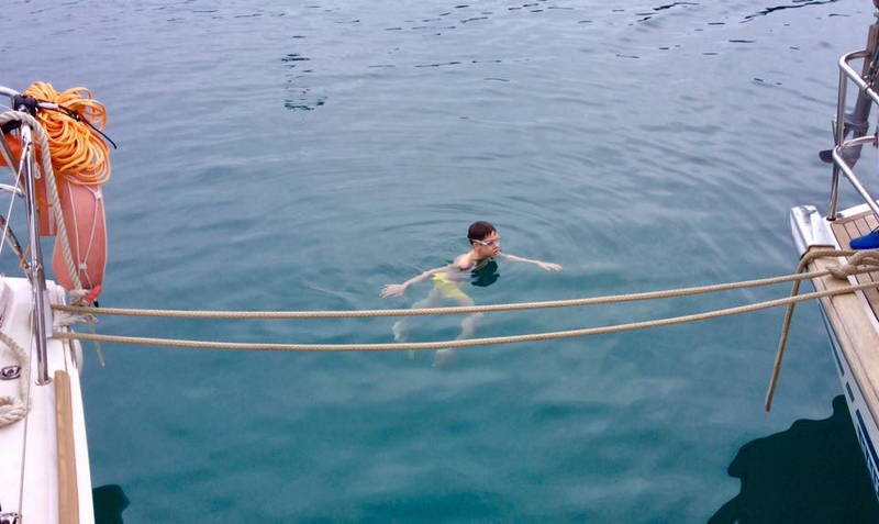 Po slabi uri smo nadaljevali pot proti matični marini. Po približno dveh tretjinah poti smo naredili še en postanek. Zasidrali smo se na skupnem privezu v zalivu Portič, in ponovili morsko vajo.