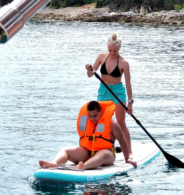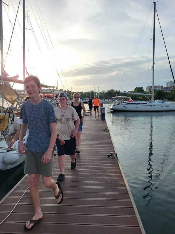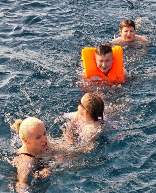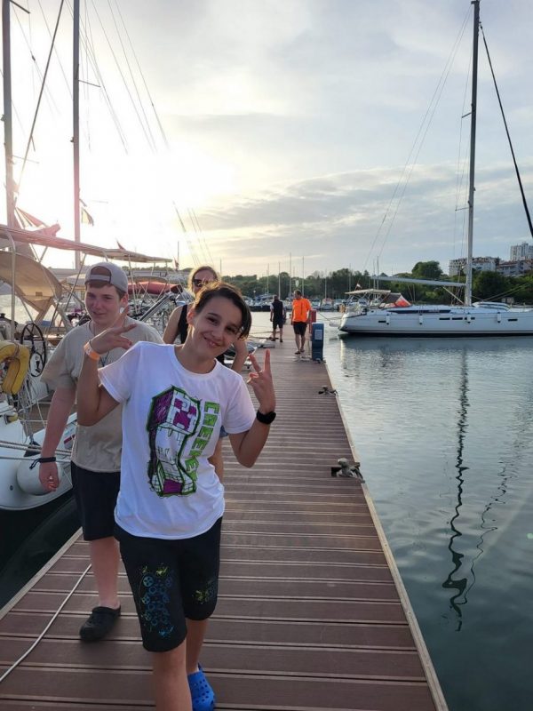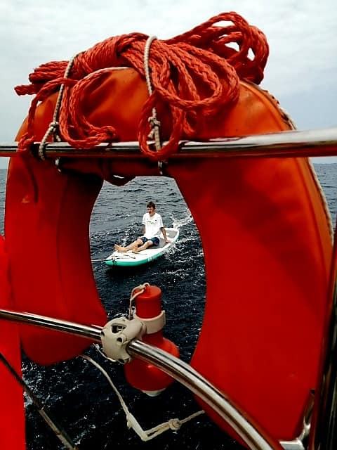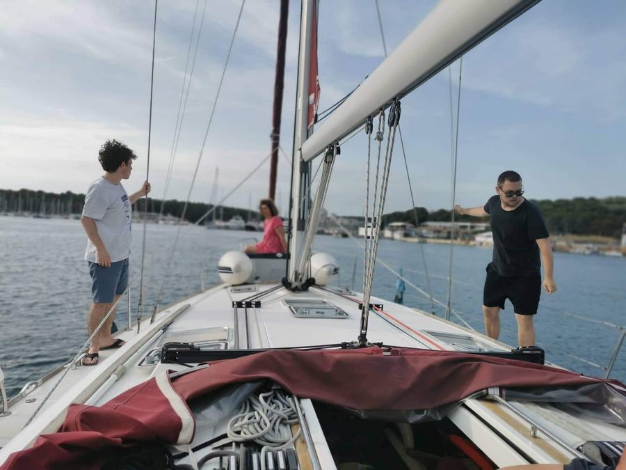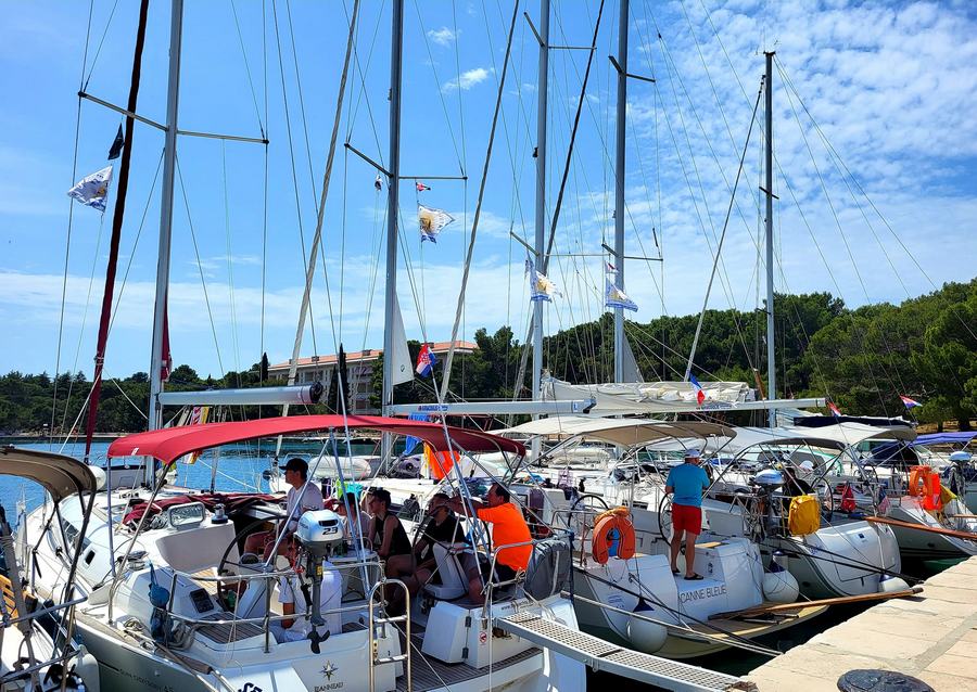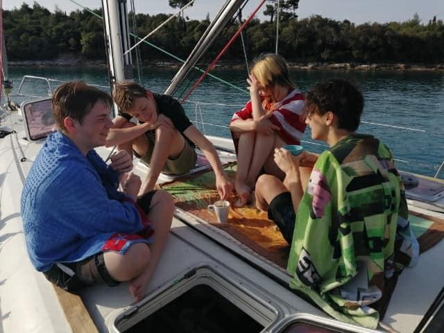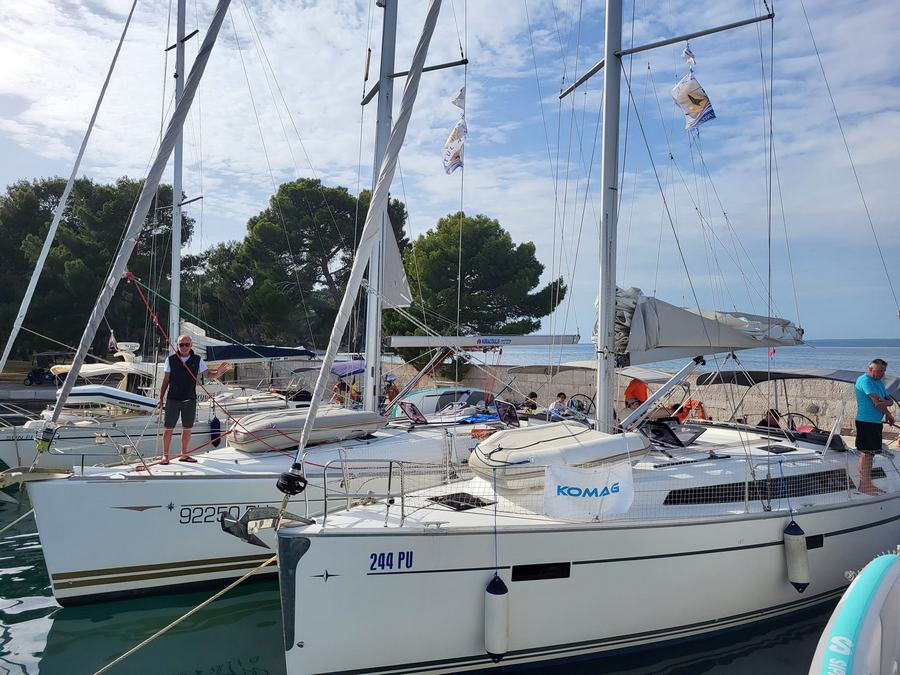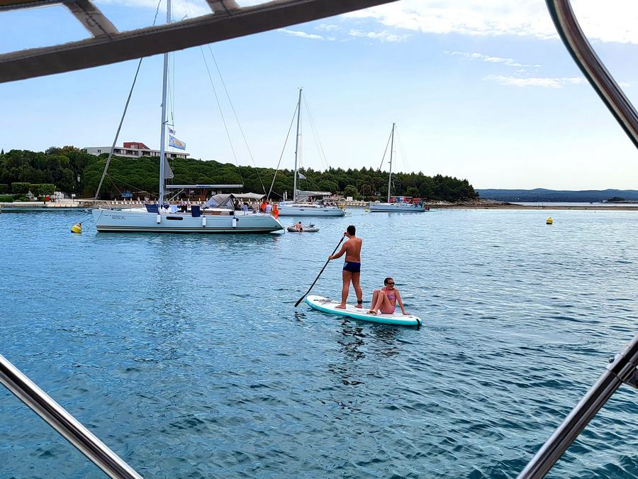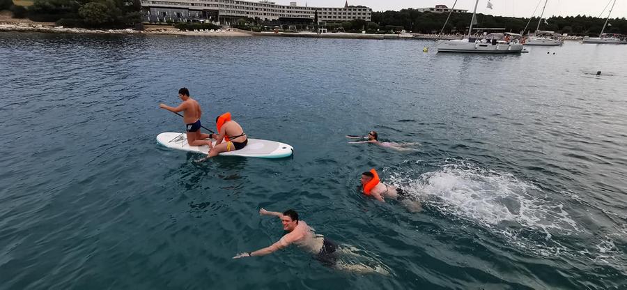 Noč na bojah je minila mirno, zjutraj pa nas sonce ni pustilo spati. Še pred zajtrkom je bil na in okrog jadrnic že pravi živ-žav; v vodi, na supih, na čolnih.