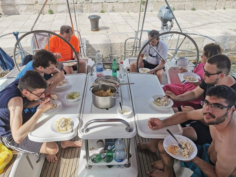 Po ogledu je bil čas za kosilo in ohladitev v bližnjem zalivčku, ob petih pa smo bili že na poti v matično marino. Za popestritev poti je poskrbel vodni taksi Sappa. Zadnja jadrnica se je vrnila v Verudo ob pol osmih.