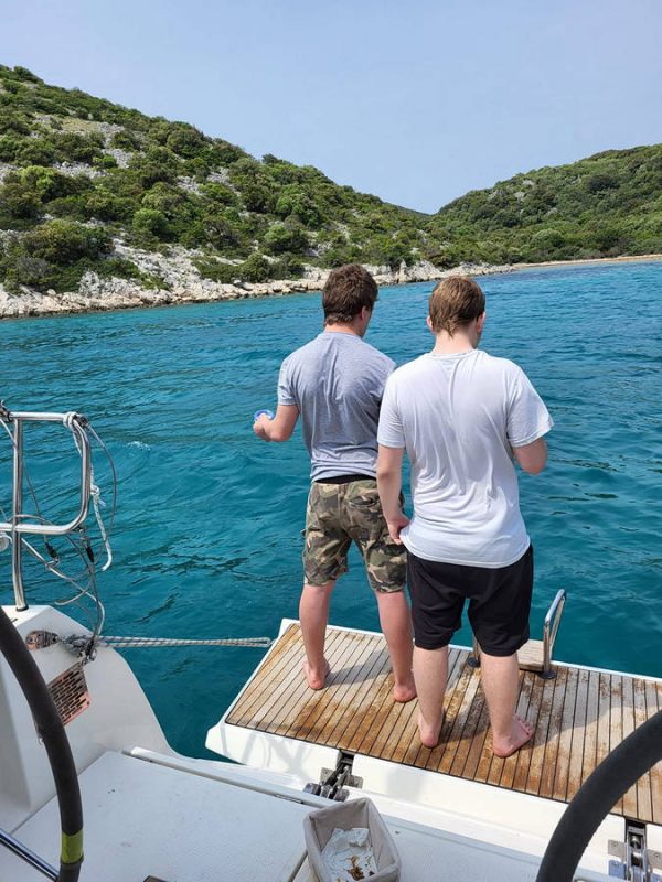 Precej uspeha so imeli mladi ribiči tudi pri ribolovu, osem konkretnih rib je končalo na suhem, zvečer pa v ponvi. Vmes smo si privoščili kosilo po jadrnicah in počitek. Počitek je bil seveda kratek, ker je bilo ob tako čudovitem vremenu škoda časa za poležavanje.
