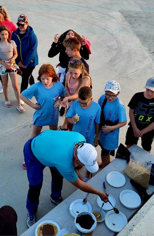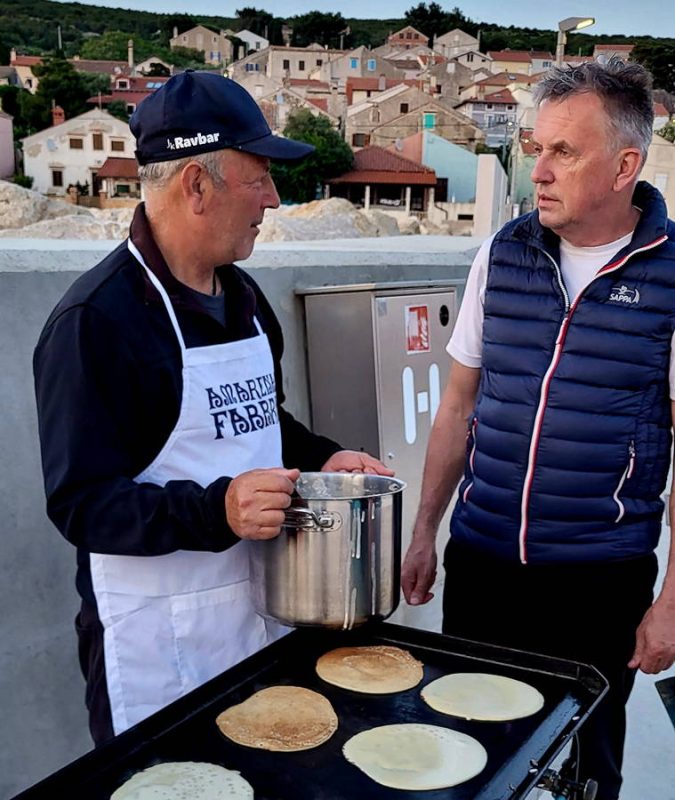 Po ogledu naselja je bil na programu sladki večer – tradicionalna peka palačink v organizaciji društva. Bila je že trda tema, ko je na pomolu še vedno dišalo po palačinkah, ki pa jih seveda ni bilo več. So pa otroci nadaljevali večer z druženjem, igrami, glasbo in zasluženim počitkom.
