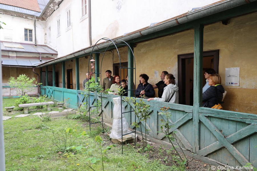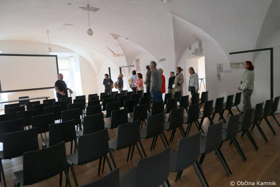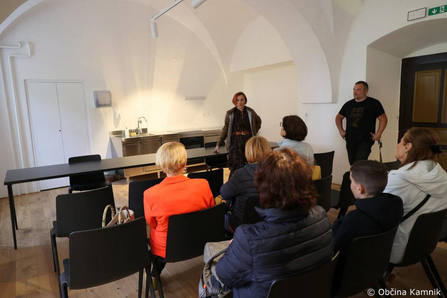 Obiskovalci so sprva ogledali novo večnamensko dvorano za izvedbo kulinaričnih in drugih delavnic v samostanu. Predstavila ga je direktorica Javnega zavoda za kulturo Kamnik Irena Gajšek in med drugim poudarila, da so prostor obnovili in opremili v okviru projekta LAS Znanje preteklosti za zdravo prihodnost, in sicer s sodobno kuharsko opremo, namenjeno kuharskim in kulinaričnim dogodkom. Udeleženci delavnic se bodo lahko seznanili s starimi sortami sadja, pridobili osnovne veščine gojenja dreves, denimo cepljenja, in se podali na razburljivo pot tradicionalne kulinarike, povezane s pridelanimi sadnimi sortami.
