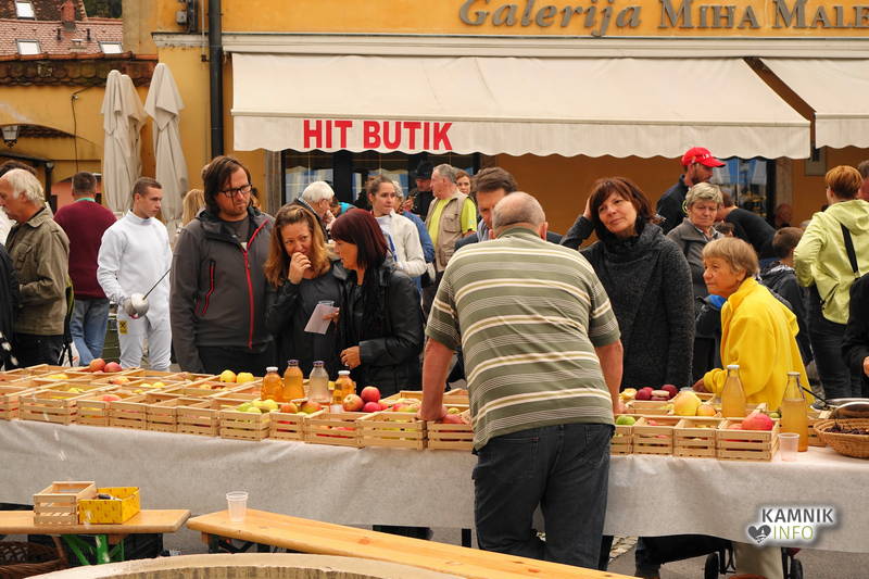 Prizadevni tunjiški sadjarji, ki se trudijo, da ohranijo kar največ starih sort in še koga spodbudijo, da bi začel obnavljati travniške sadovnjake, pa niso predstavili zgolj različnih sort jabolk, ampak so obiskovalcem današnje tržnice ponudili tudi krhlje, mošt ter jabolčni in hruškov kis, za polno mero, pa so naredili še pisker prekmaša, stare in prav tako skorajda pozabljene jedi, ki so jo v novo življenje ter pred pozabo rešili Okusi Kamnika.