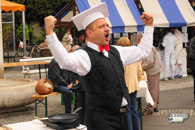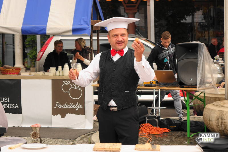 Današnjo tržnico je nekoliko drugače popestril in zašpilil kamniški igralec Uroš Potočnik, oz. Solata, kot ga kličemo tisti, ki ga poznamo še z najstniških dni, ki je na Glavnem trgu uprizoril gledališko predstavo »Kuhajmo z jajci!«, ki je nekakšna simpatična parodija na najrazličnejše kuharske oddaje, ki so jih polni televizijski ekrani. Predstavo je režiral Jaka Andrej Vojevec, je pa predstava neprimerno zanimivejša od kuharskih oddaj na televiziji, saj lahko gledalci šovinistično začinjene jedi, ki jih igralec v maniri »ljubezni, ki gre skozi želodec« skuha za svojo imaginarno izvoljenko, na koncu pojedo kar sami.