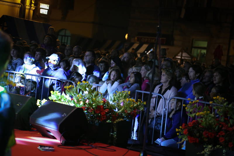 Skupaj z mrakom, ki je pokril prizorišče na Glavnem trgu, so se je iz vseh strani na trg začela zlivati množica obiskovalcev, ki je že ob prvih taktih, sprva sicer še nekoliko sramežljivo, nato pa vse glasneje pritegnilo znamenitemu refrenu o ti ti ti rožici, ki so jo Modrijani za boljše razpoloženje odigrali že na samem začetku in ki je na veselje staršev, iz otroških ust že pred časom izrinila nekdaj prav tako popularno majanje zizik.