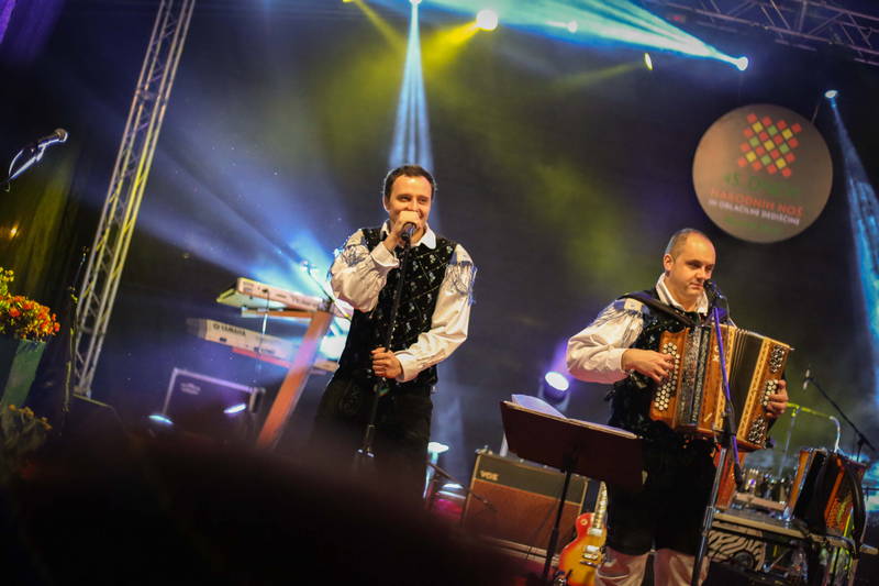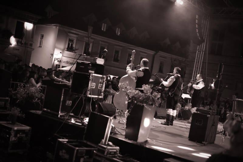 Glavni trg je bil res nabito poln, tako poln, da se je sinoči na Glavnem trgu bolj pilo in pelo, kajti za ples, ki je nekdaj zaznamoval večerne ure Dnevov narodnih noš, sinoči niti slučajno ni bilo dovolj prostora. Ampak večine, pretežno mladih obiskovalcev, to ni niti najmanj motilo, ampak so ob melodijah skupin Modrijani in Pop Design, ki sta se na posrečen način izmenično izmenjevali na odru, polnoštevilno vztrajali vse do konca programa, ki se je končal ob 1-ih zjutraj, skorajda nekoliko prezgodaj, saj bi večina bržčas zmogla in hotela vztrajati vse do belega dne.