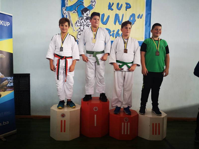 V kategoriji mlajših dečkov in deklic U12 so nastopili Haya Veinhandl Obaid, ki je z največ ipponi osvojila ne samo 1. mesto, ampak tudi pokal za najboljšo tekmovalko Judo tekmovanja Una Bihač. Kot po tekočem traku je borbe zmagoval tudi Žiga Pahor, ki je premoč nasprotniku priznal le v finalu in se uvrstil na 2. mesto. Na stopničkah – 3. mestu je stal tudi Karim Veinhandl. Čeprav se je kolajna izmuznila Gašperju Romšaku, ki je prav tako najlažji med soborci, je pokazal velik napredek in dobre borbe. Čestitamo vsem tekmovalcem, ki so se vrnili s 7 kolajnami in 1 pokalom.