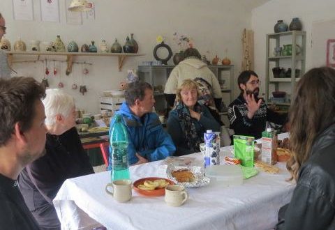 Za mizo, bogato in mamljivo obloženo z doma spečenimi dobrotami, pred vrati, na stolih, umetelni klopci pred ateljejem…so se gnetle knjige. Prave, pravcate knjige.