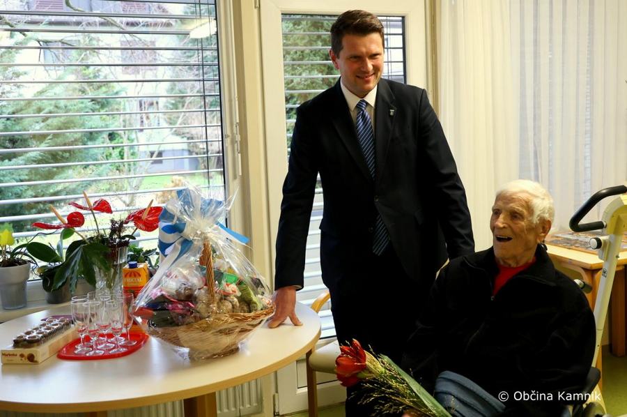 Katarini Zore in Francu Uršiču, ki sta v letošnjem letu napolnila častitljivih 100 let, je voščil tudi kamniški župan.