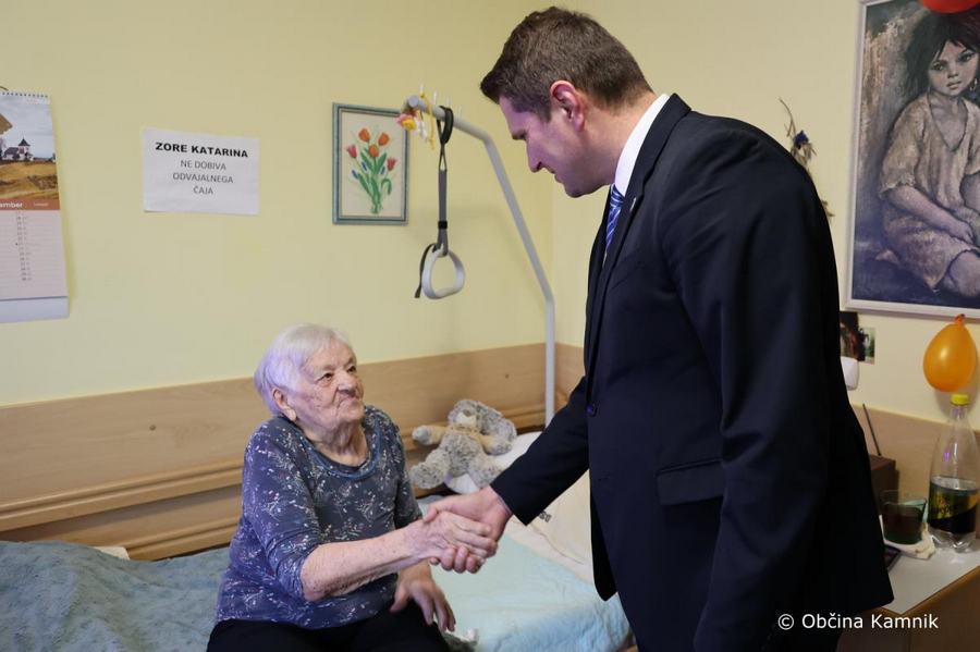 Župan Matej Slapar, predsednik Društva upokojencev Kamnik Miha Resnik ter predstavnica kamniških upokojencev Valerija Štupar so v četrtek, 28. novembra 2024, obiskali dva kamniška stoletnika, Katarino Zore in Francija Uršiča, ter jima čestitali ob visokem jubileju. V Domu starejših občanov Kamnik so pisani baloni pred vrati sob napovedovali, kje praznujeta kamniška stoletnika.